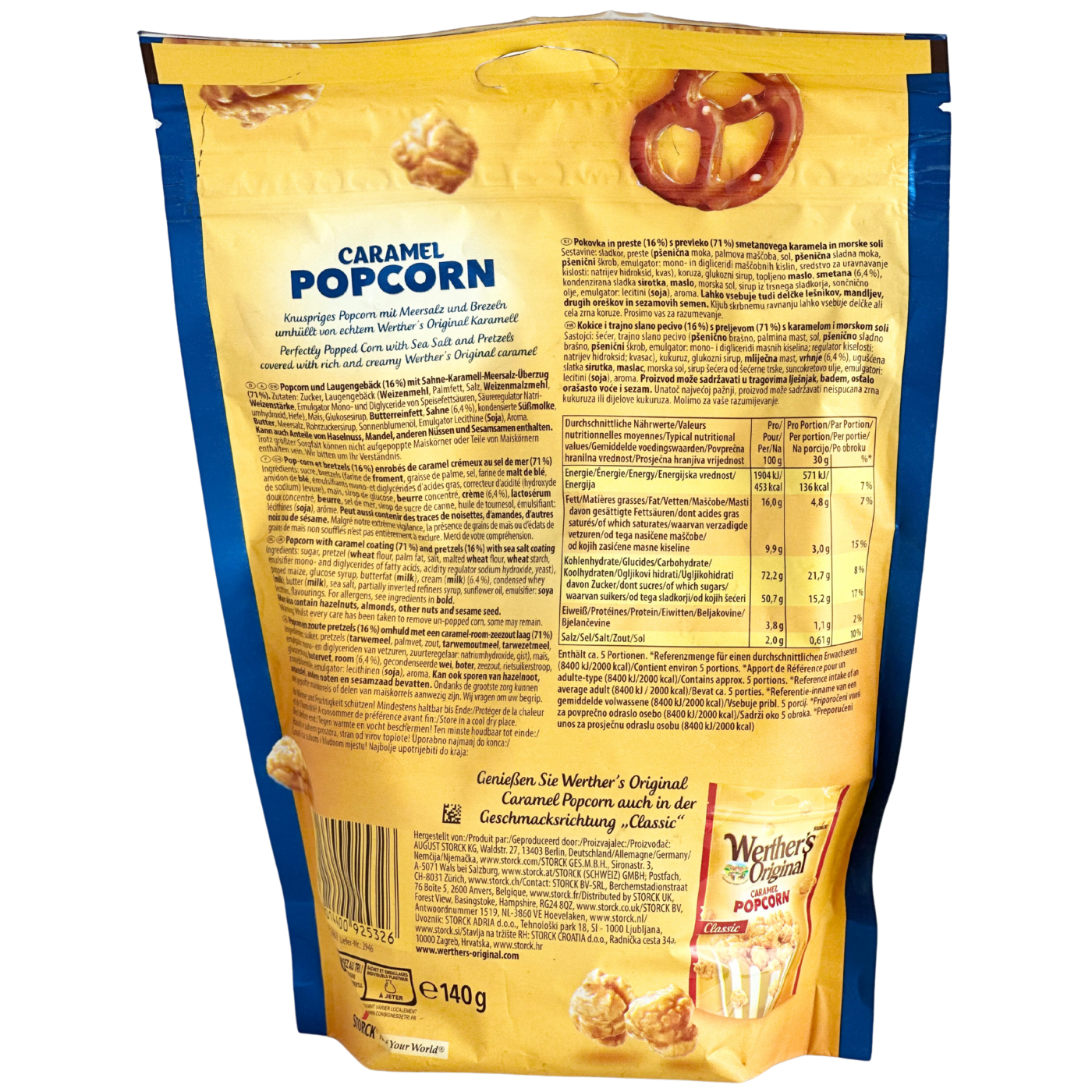Такого ви ще не їли! Уявіть собі хрусткий попкорн з карамеллю та морською сіллю і брецлі, вкриті карамеллю, приготованою за традиційним рецептом від виробника Werther’s Original. Цю смакову композицію важко описати, тому краще самому спробувати.