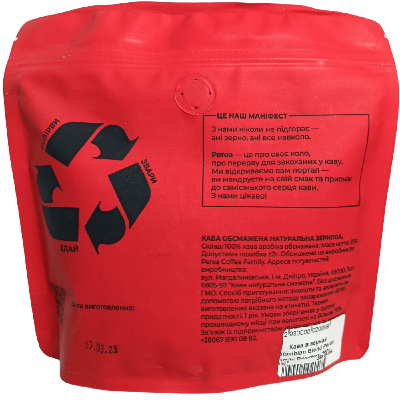 Кава в зернах Colombian Blend Perea Family Roastery 250g