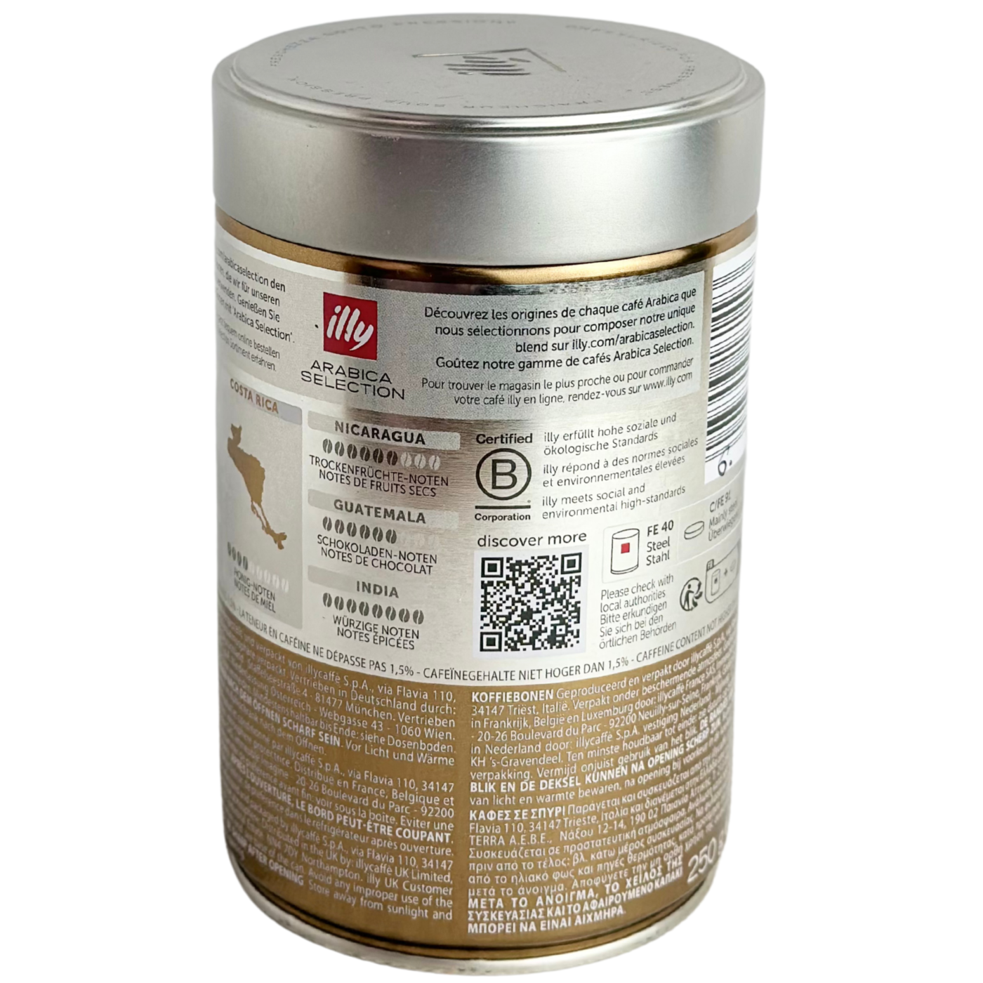 Кава в зернах Costa Rica Arabica Selection моноарабіка Illy — це преміальна кава з серця Коста-Рики, вирощена на високогірних плантаціях у ідеальних кліматичних умовах. Виготовлена з добірних зерен 100% арабіки, ця моноарабіка має гармонійний смак із нотками карамелі, цитрусових і легкого медового післясмаку. Середнє обсмаження підкреслює природну солодкість та аромат кави. Ідеально підходить для приготування еспресо, альтернативних способів заварювання або кавомашини. Вибір справжніх поціновувачів якості та витонченого смаку.