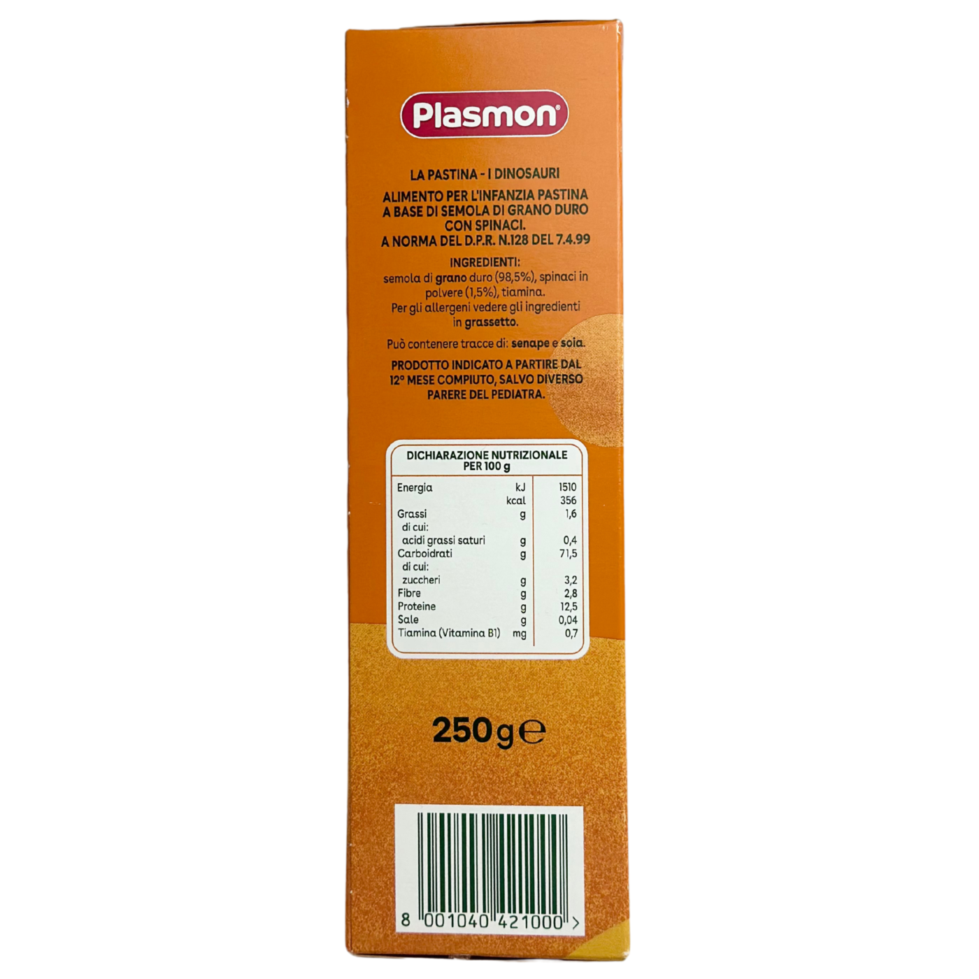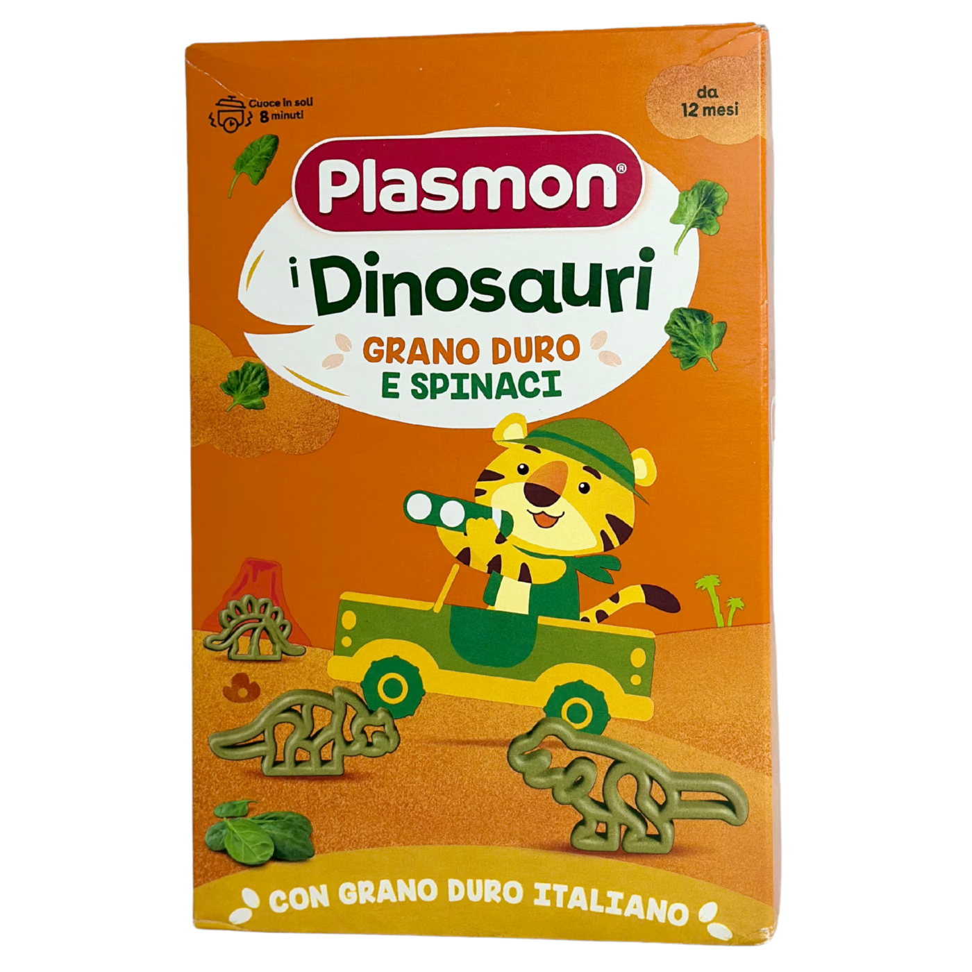 Макаронні вироби у формі динозаврів, безперечно сподобаються малюкам. Виготовлені з добірної пшениці твердих сортів, сушеного шпинату і фільтрованої води. Створені спеціально для дітей із 1 року, макаронні вироби зберігають свій привабливий зовнішній вигляд і після варіння. У шпинаті містяться білки, цукри, органічні кислоти, вітаміни, залізо, калій, магній, йод. Виготовлені за оригінальною рецептурою зі спеціально підібраних натуральних інгредієнтів.