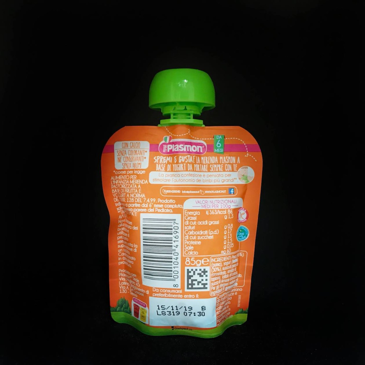 Дитяче йогуртове пюре з груші і йогурту Plasmon Spremi e Gusta Pera Yogurt від 6 місяців
