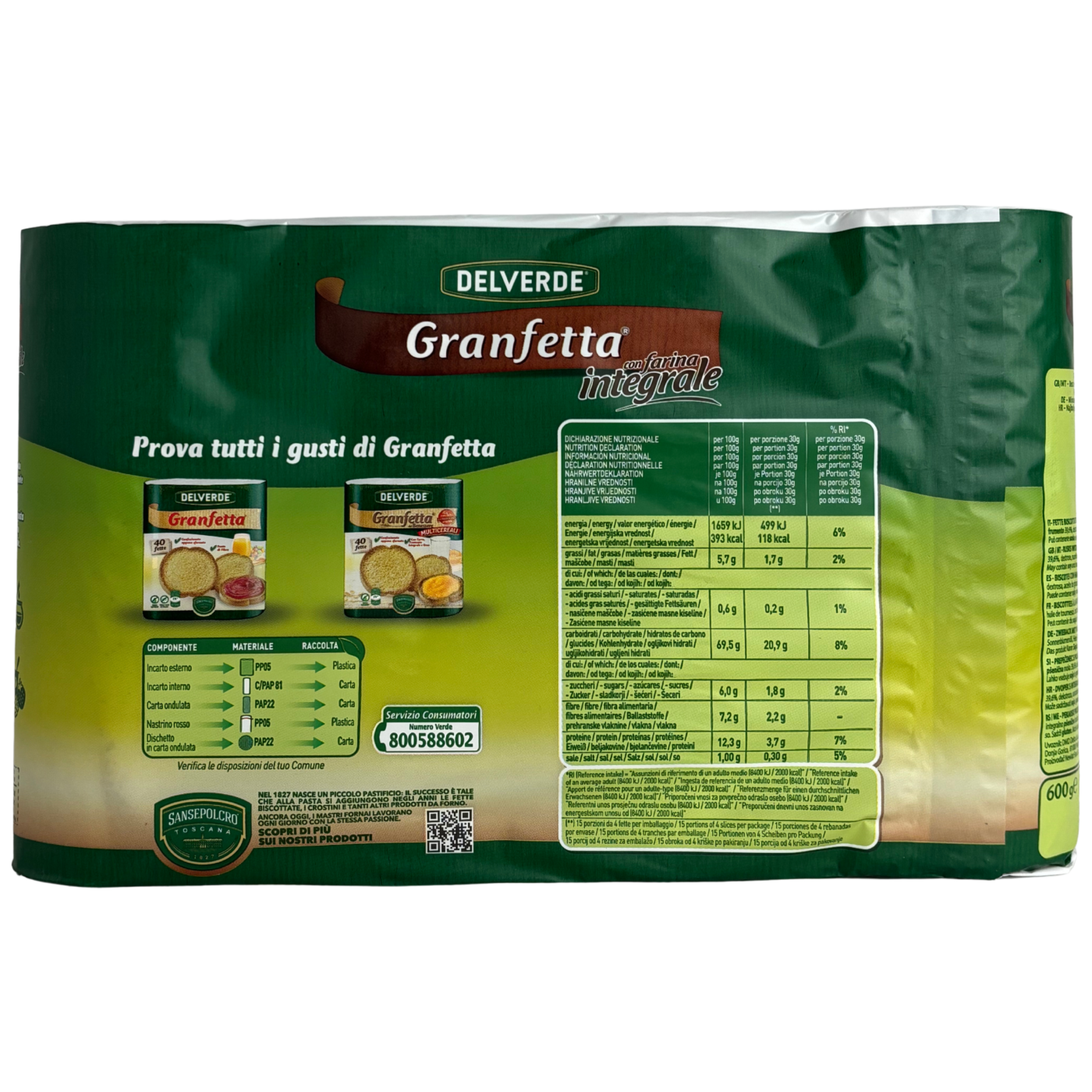 Тости цільнозернові GranFetta con farina integrale Sansepolcro 600g