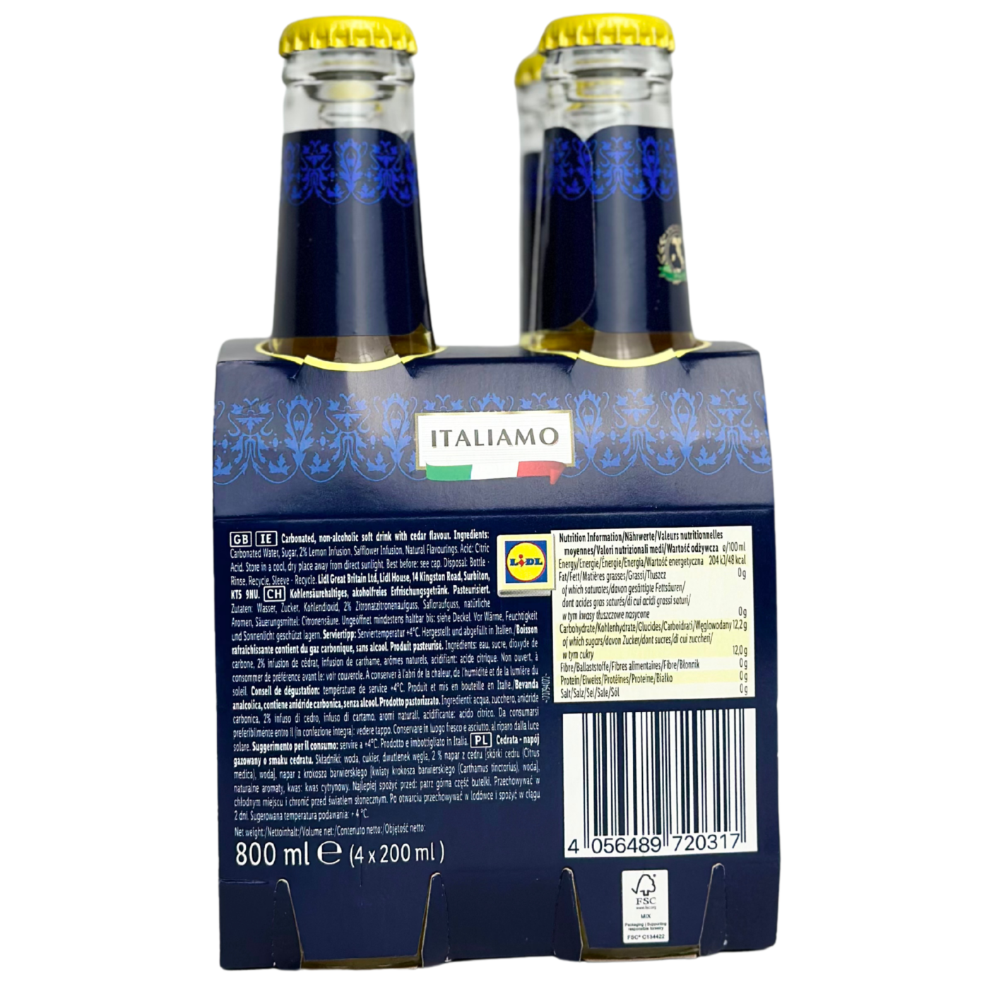 Газований напій зі смаком кедра Cedrata Italiamo в упаковці 4 по 200 мл — це освіжаючий італійський лимонад із унікальним цитрусовим смаком. Напій має характерні ароматні нотки кедра (цитрона), який надає йому свіжий, фруктовий та злегка солодкуватий профіль.