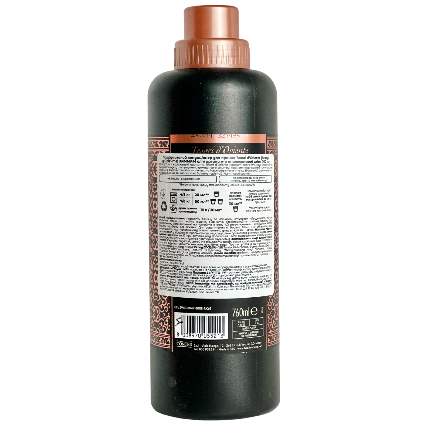 Парфумований ополіскувач для одягу.Концентрована формула засобу містить у складі арганову олію та екстракт квітів апельсину.Гарно пом'якшує та розтягує волокна тканин для полегшення прасування. Одяг залишається м'яким та пахучим тривалий час.Однієї пляшки вам вистачить на 38 прань.