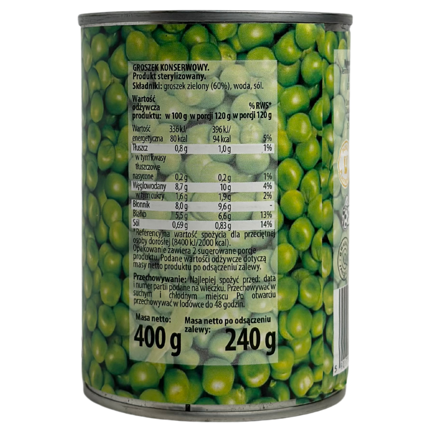 Консервований горошок Nasza Spiżarnia - ніжний зелений горошок із природною солодкістю та соковитою текстурою, збережений у легкому розсолі. Готовий до використання, він чудово підходить для салатів, гарнірів, супів і закусок, додаючи стравам яскравого кольору та м’якого смаку. Горошок зберігає поживні властивості, містить рослинний білок, клітковину та вітаміни, що робить його корисним і зручним інгредієнтом для щоденного меню.