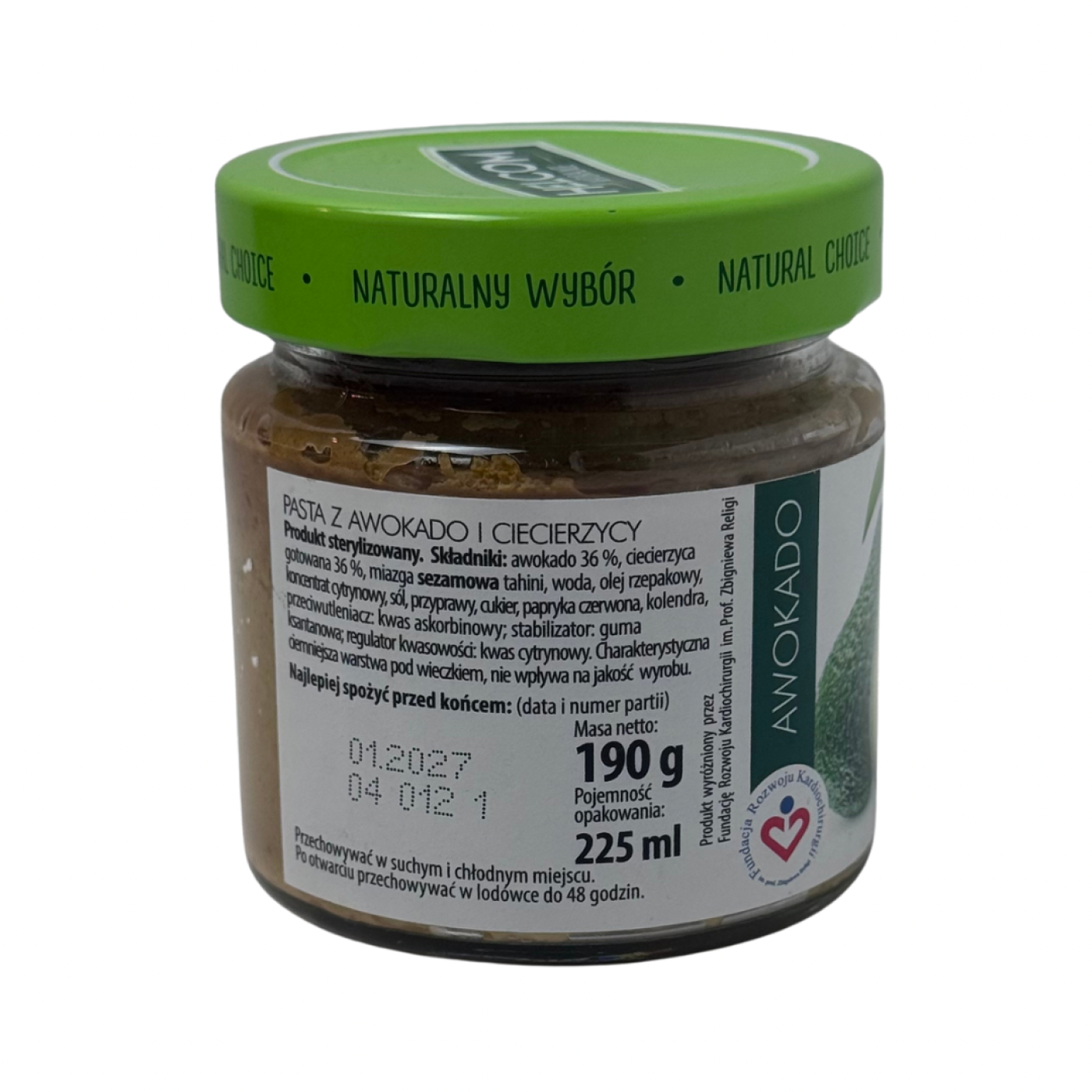 Пасту зручно використовувати як намазку на хліб, крекери або тости, а також як додаток до салатів і закусок. Формат 225 ml компактний і зручний для щоденного вживання вдома чи на роботі. Це відмінний вибір для тих, хто цінує рослинні продукти, легкість у приготуванні і насичений смак авокадо та нуту.