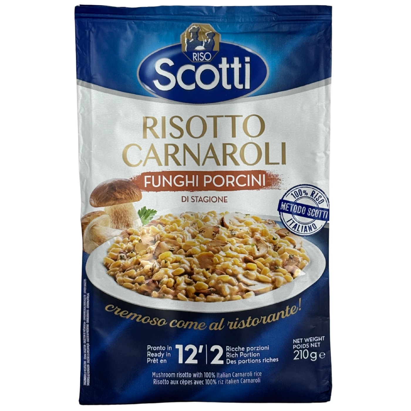 Risotto porcino di stagione – надзвичайно ароматне різото швидкого приготування з білими грибами, які роблять смак страви як в кращих ресторанах. Його виготовляють на основі рису Карнаролі – італійський сорт, який тримає форму під час приготування краще за інші види.