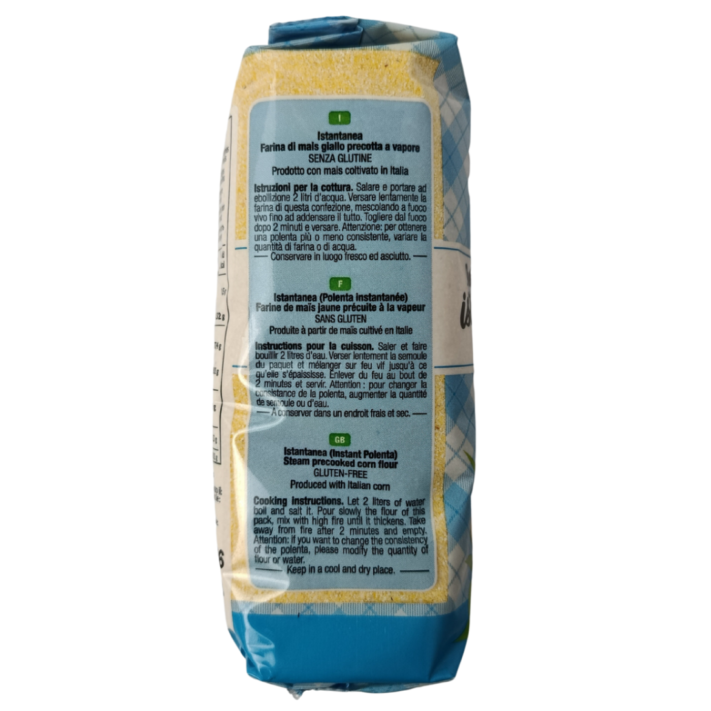 Кукурудзяна крупа Polenta istantanea Molino Peila - Кукурудзяна крупа дрібного помелу. Італійський продукт,який не містить глютену,тому можна використовувати в харчуванні дітей і людям, які не вживають глютен. Багатий на клітковину,вітаміни,мінеральні речовини та білок. Можна використовувати для приготування баношу,різноманітної випічки та каші.