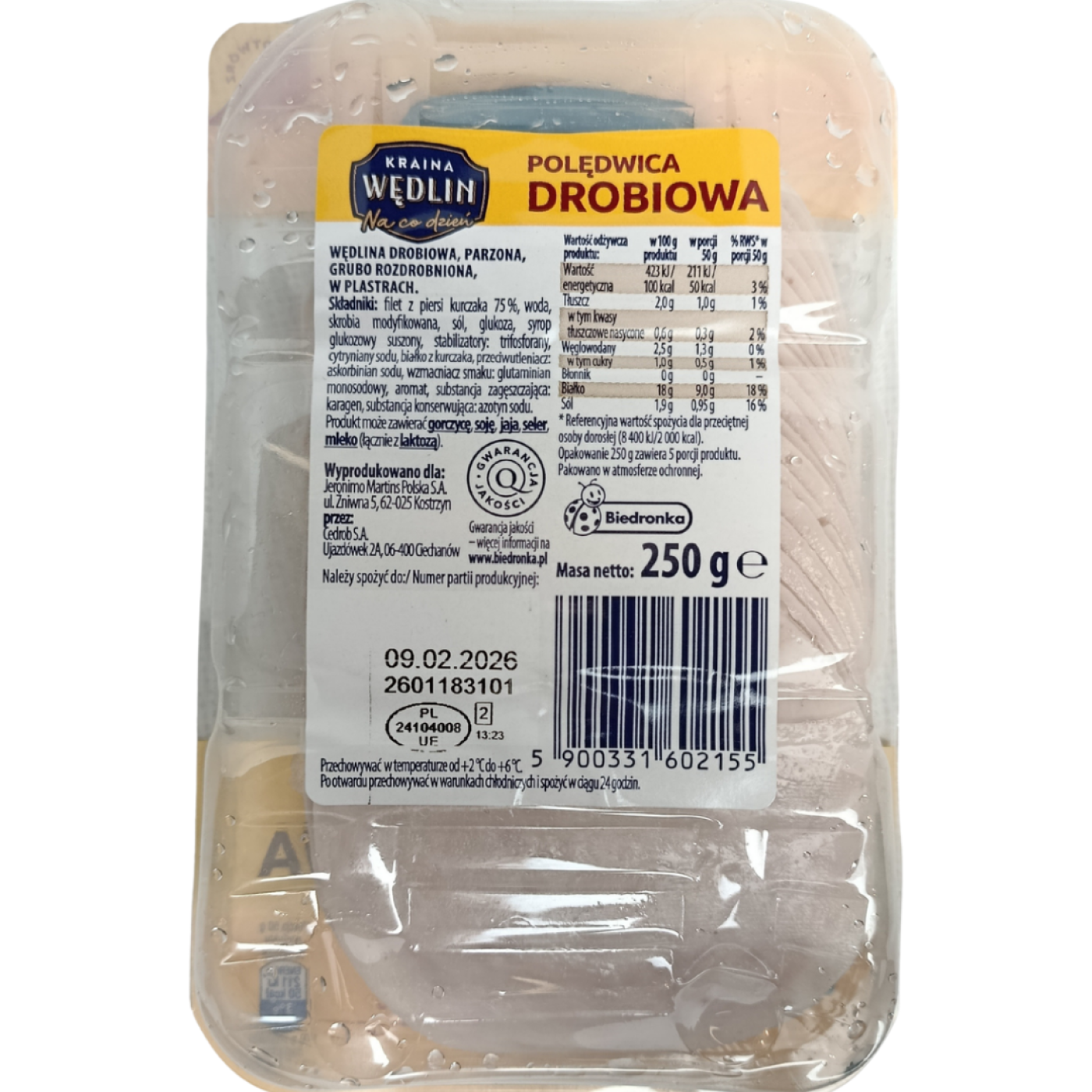 Куряче філе приготовлене на пару слайсами Poledwica Drobiowa Kraina Wedlin 250g