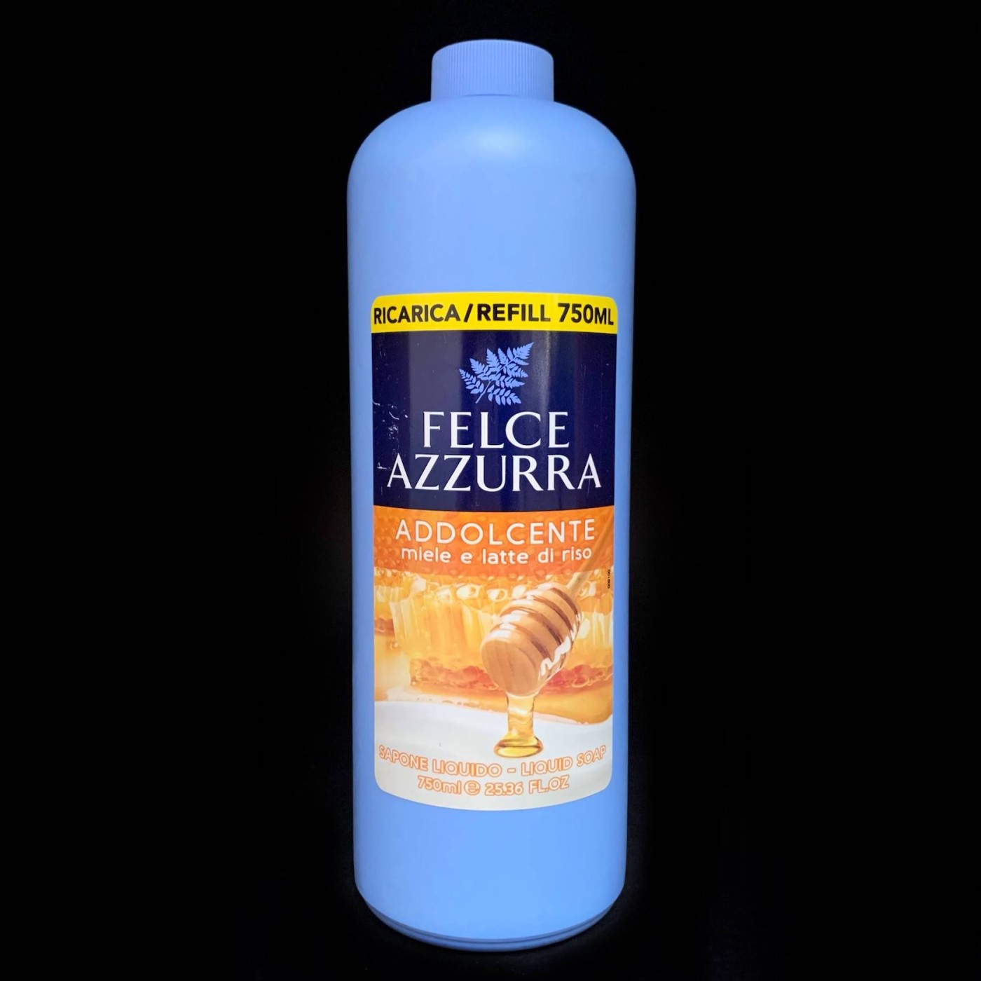 Felce Azzurra Addolcente miele & latte di riso – рідке мило, яке ідеально підходить для сухої шкіри, адже воно відмінно пом’якшує, зволожує її і живить, а ще й залишає аромат бергамоту та апельсину в поєднанні з теплими нотками меду і рисового молочка. Мило делікатно очищає та підходить для рук і обличчя.