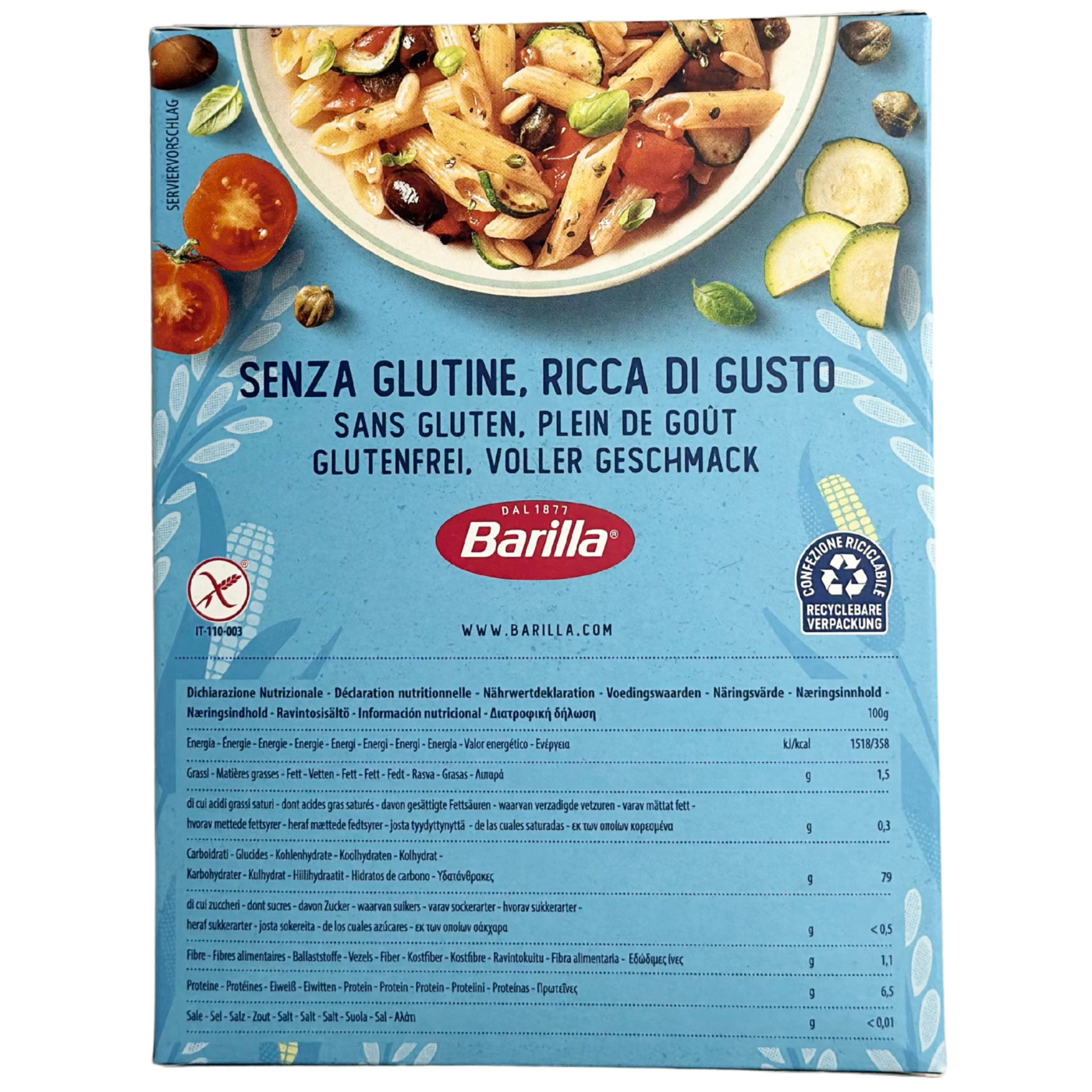 Penne Rigate senza glutine – макарони від італійського виробника Barilla, які підходять споживачам, що дотримуються безглютенової дієти. Їх виготовляють з кукурудзяного та цільнозернового борошна, вони мають відмінний смак, а форма з косим зрізом та ребриста текстура роблять їх чудовим вибором для будь-яких соусів, адже він «затримається» на поверхні.