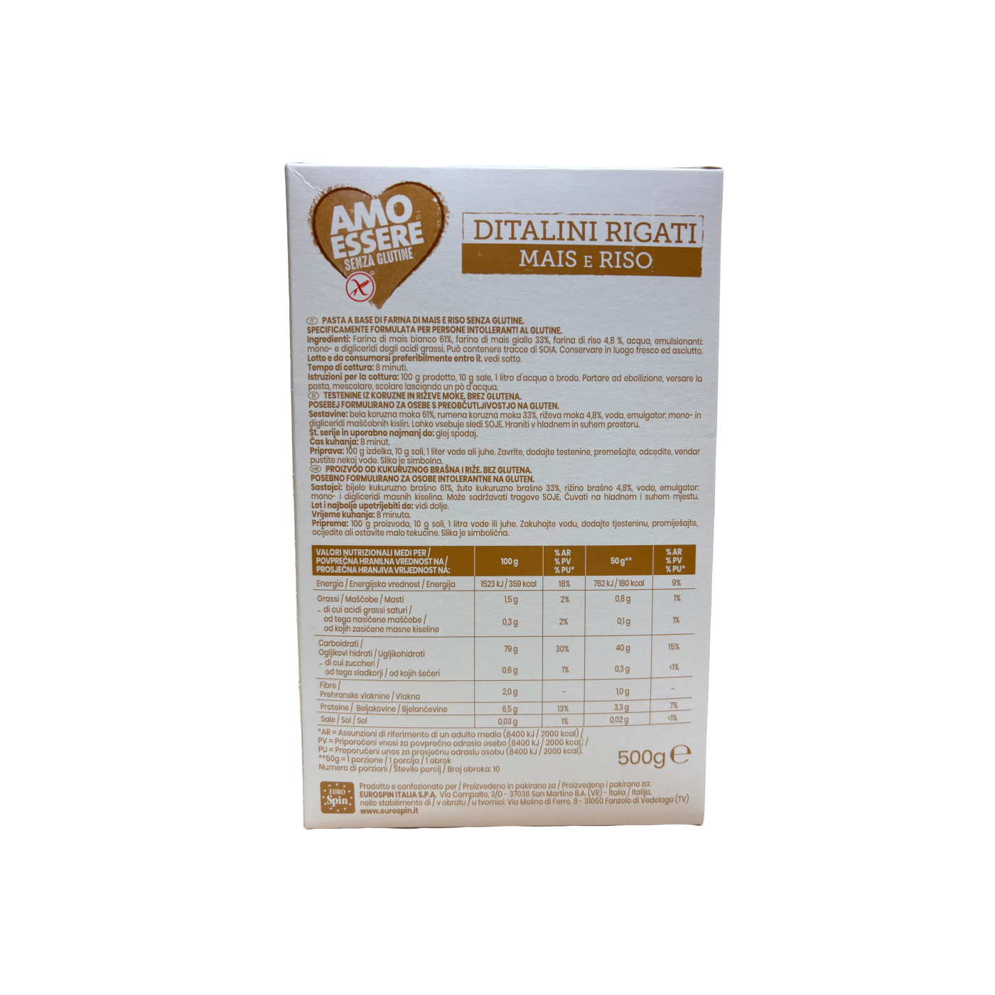 Макарони з кукурудзяного і рисового борошна без глютену Detalini rigati Mais e Riso Amo Essere 500g