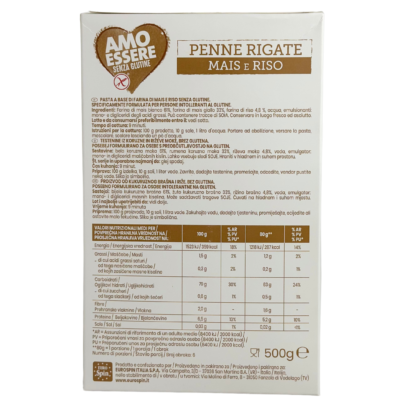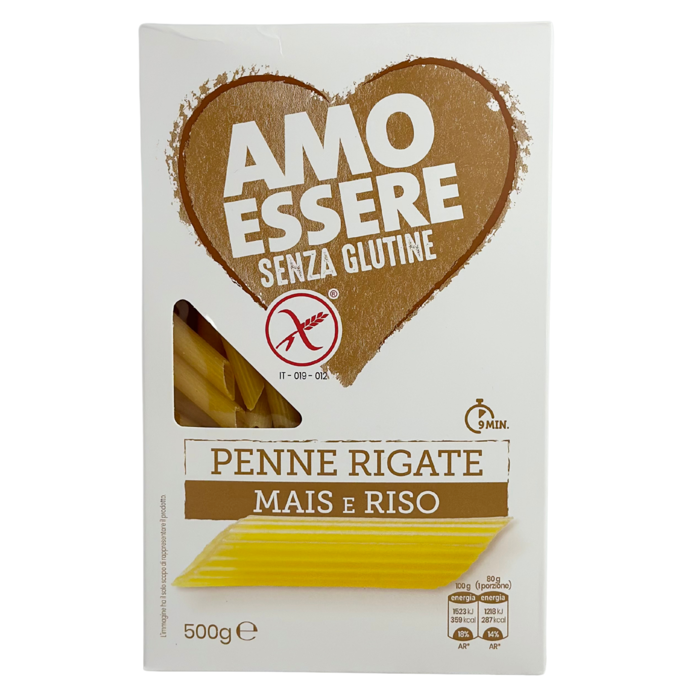Макарони з кукурудзяного і рисового борошна без глютену Penne Rigate Mais e Riso Amo Essere 500g