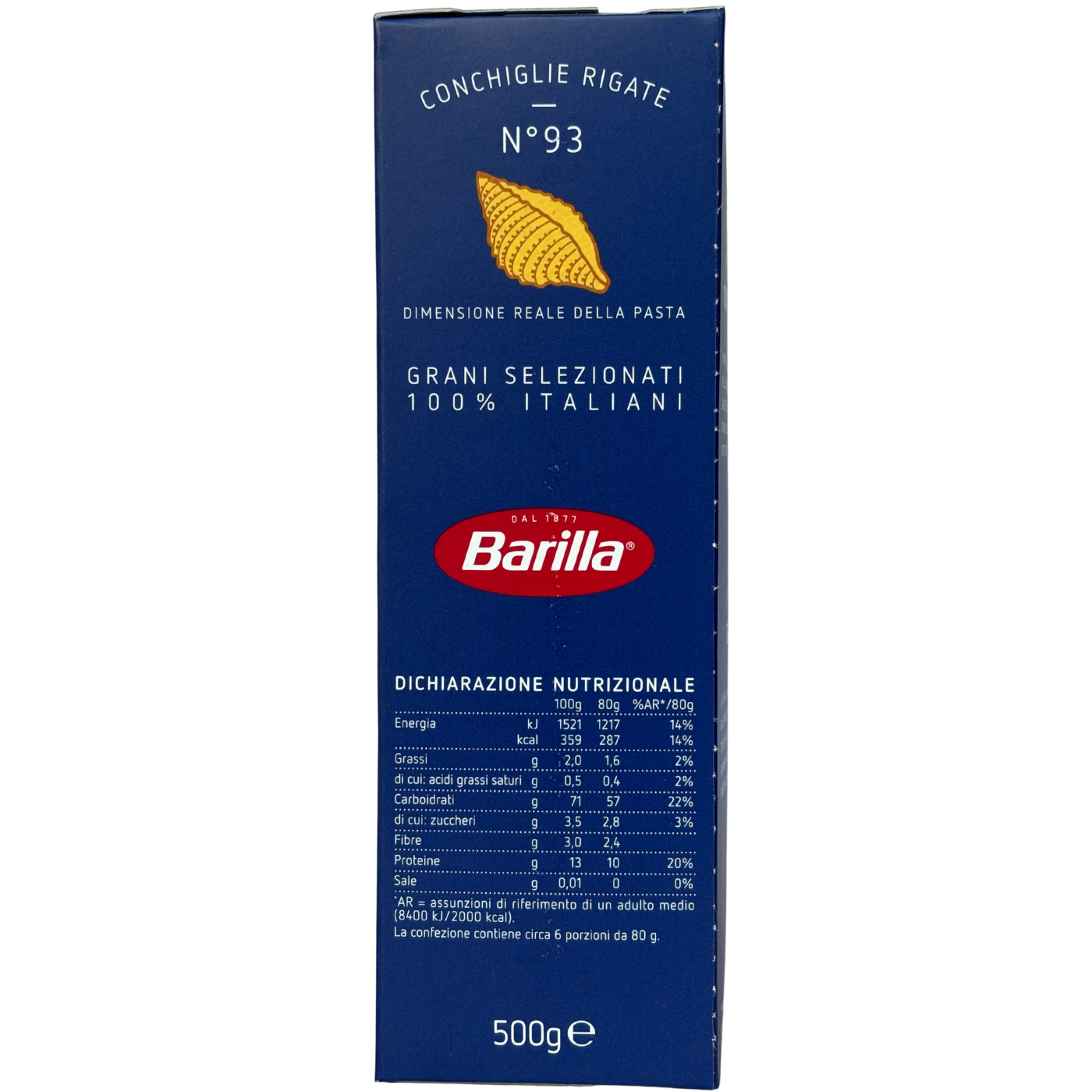Паста Barilla n.93 Conchiglie rigate - це класичні італійські макарони у формі ракушок з ребристою поверхнею, яка допомагає краще утримувати соуси. Виготовлені з високоякісного пшеничного борошна, ці пасти мають відмінний смак та текстуру. Форма Conchiglie робить їх ідеальним вибором для різних страв, від салатів до головних страв. Упаковка містить 500 грамів, ідеально підходить для приготування смачних і поживних страв для всієї родини. Паста Barilla n.93 Conchiglie rigate - це гарантія якості та смаку в кожній тарілці.