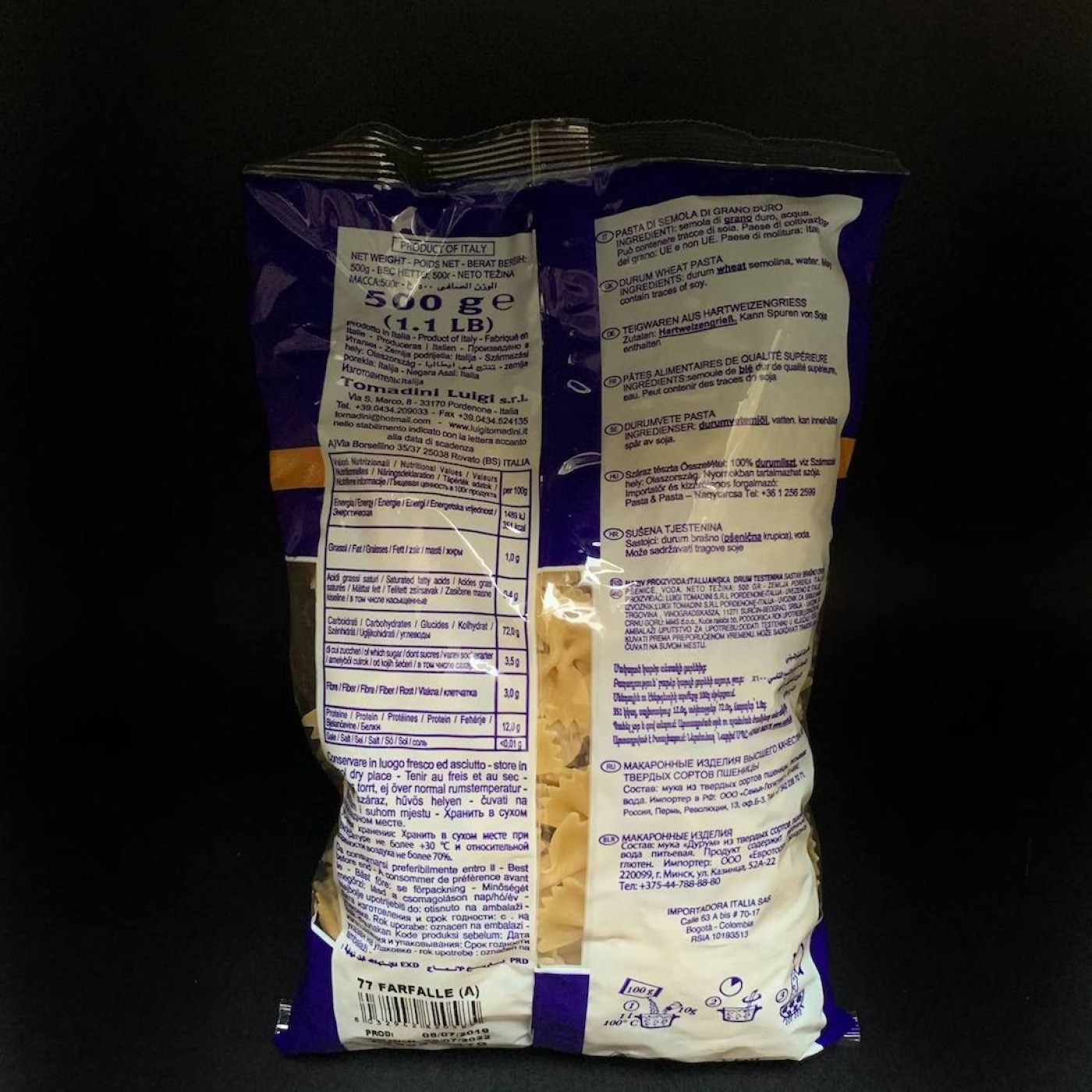 Макарони farfalle від Luigi Tomadini стане хорошим вибором для приготування повсякденних страв, вони смачні і якісні, адже виготовлені тільки з кращих інгредієнтів.