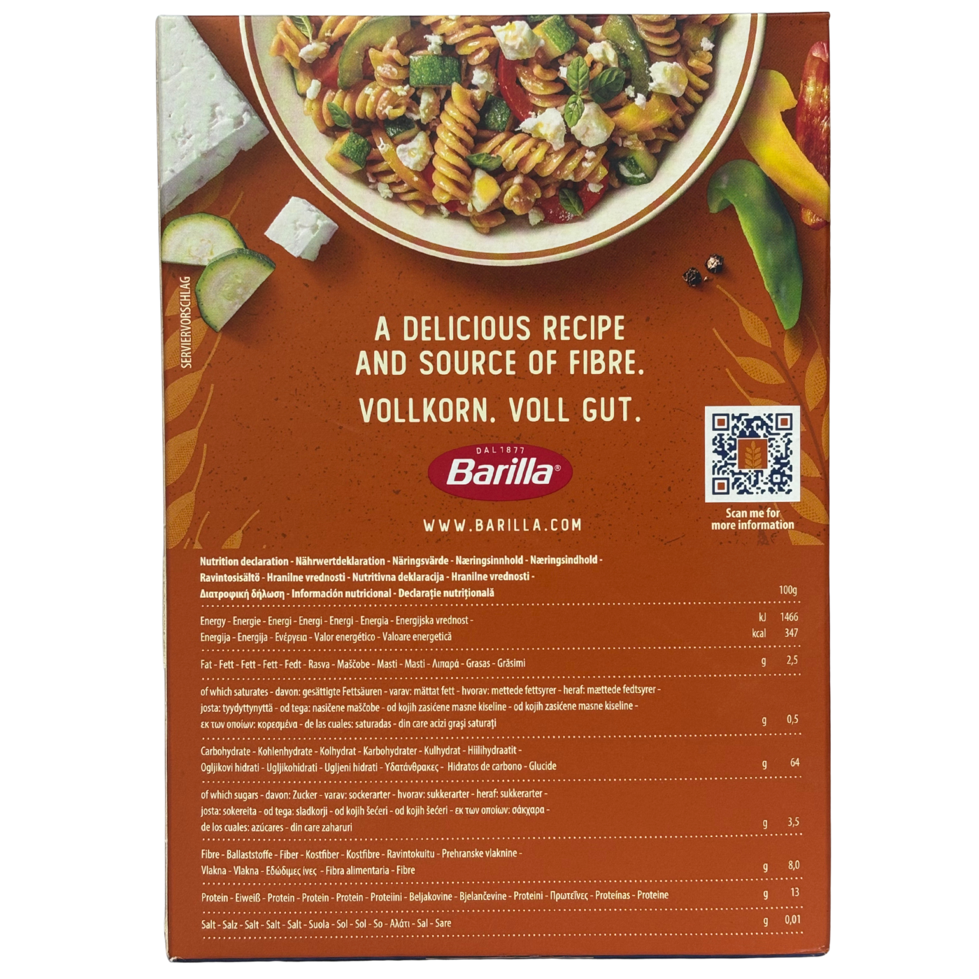 Паста Інтеграле Фузілі Barilla Integrale Fusilli - це смачний та ароматний продукт, що поєднує класичну спіральну форму з користю цільнозернової пшениці. Має насичений, злегка горіховий смак і пружну текстуру, завдяки якій чудово тримає соус - від томатних до вершкових чи овочевих. Цільнозерновий склад забезпечує більше клітковини та корисних нутрієнтів, роблячи пасту поживнішою та ситнішою. Зручна упаковка 500 г підходить як для щоденного приготування, так і для створення корисних страв на всю родину.
