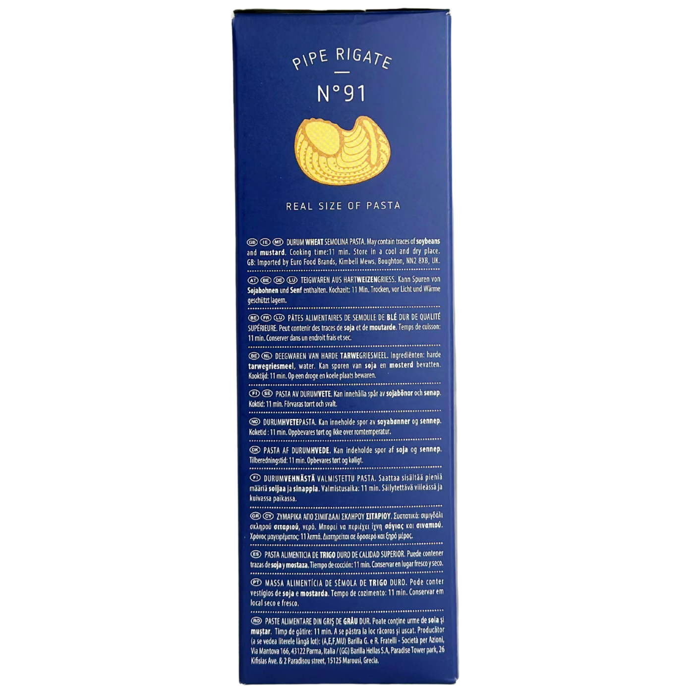Завдяки своїй формі, Піпе Рігате також добре підходить для запіканок або салатів, додаючи стравам не тільки смакову насолоду, а й естетичний вигляд. Pаста Barilla n.91 — це гарантія якості та відмінного смаку, який підкорює прихильників італійської кухні по всьому світу.