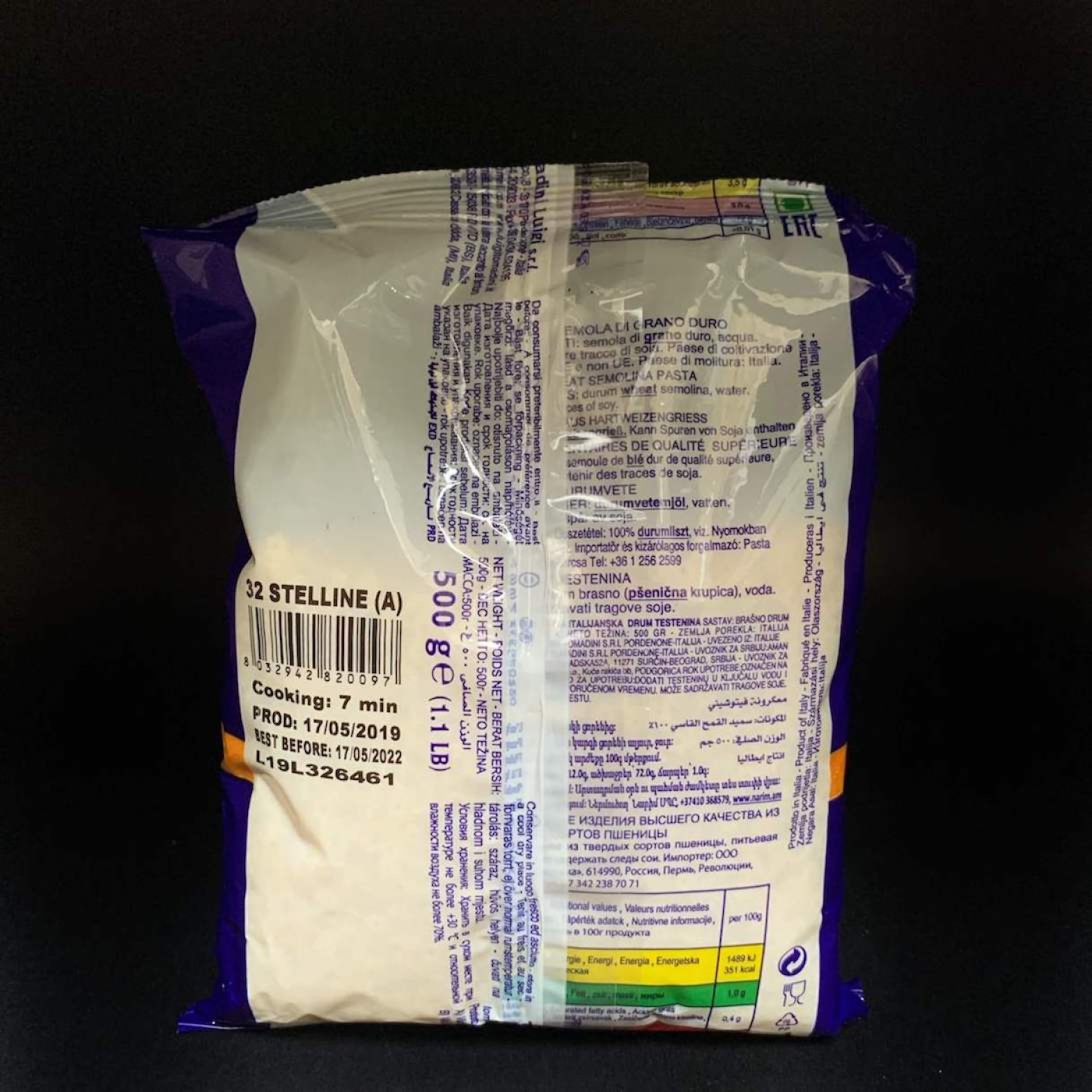 Stelline – улюблений багатьма різновид пасти, який ідеально підходить для різноманітних супів – як бульйонів, так і густих. Вона має вигляд зірочки, завдяки чому і отримала таку назву. Це також вдалий вибір для швидкого гарніру для дітей, адже відварюються макарони лише 7 хвилин, до того ж, цікаво виглядають на тарілці. Вони виготовлені з борошна твердих сортів пшениці, тому їх не потрібно промивати водою, вони не склеюються.