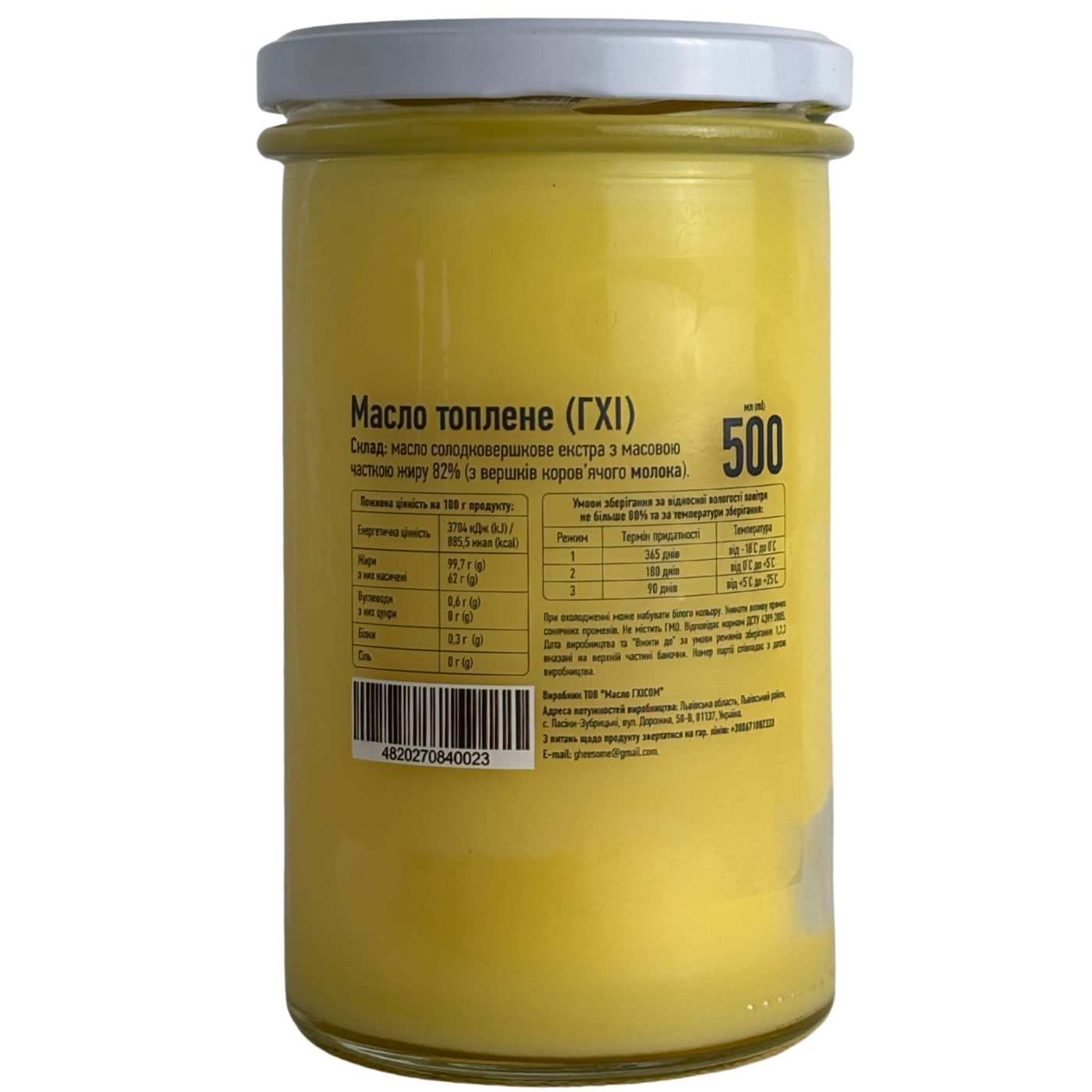 Масло ГХІ- це очищене, безлактозне коров'яче масло, що позитивно впливає на травлення, пам'ять і зір. Не виділяє канцерогенів під час смаження, не містить лактози та казеїну, додає стравам приємний смак та аромат, багате на вітаміни та жирні кислоти. Підходить для всіх, хто дотримується здорового харчування, вагітним жінкам і дітям, тим, хто дбає про власний імунітет.