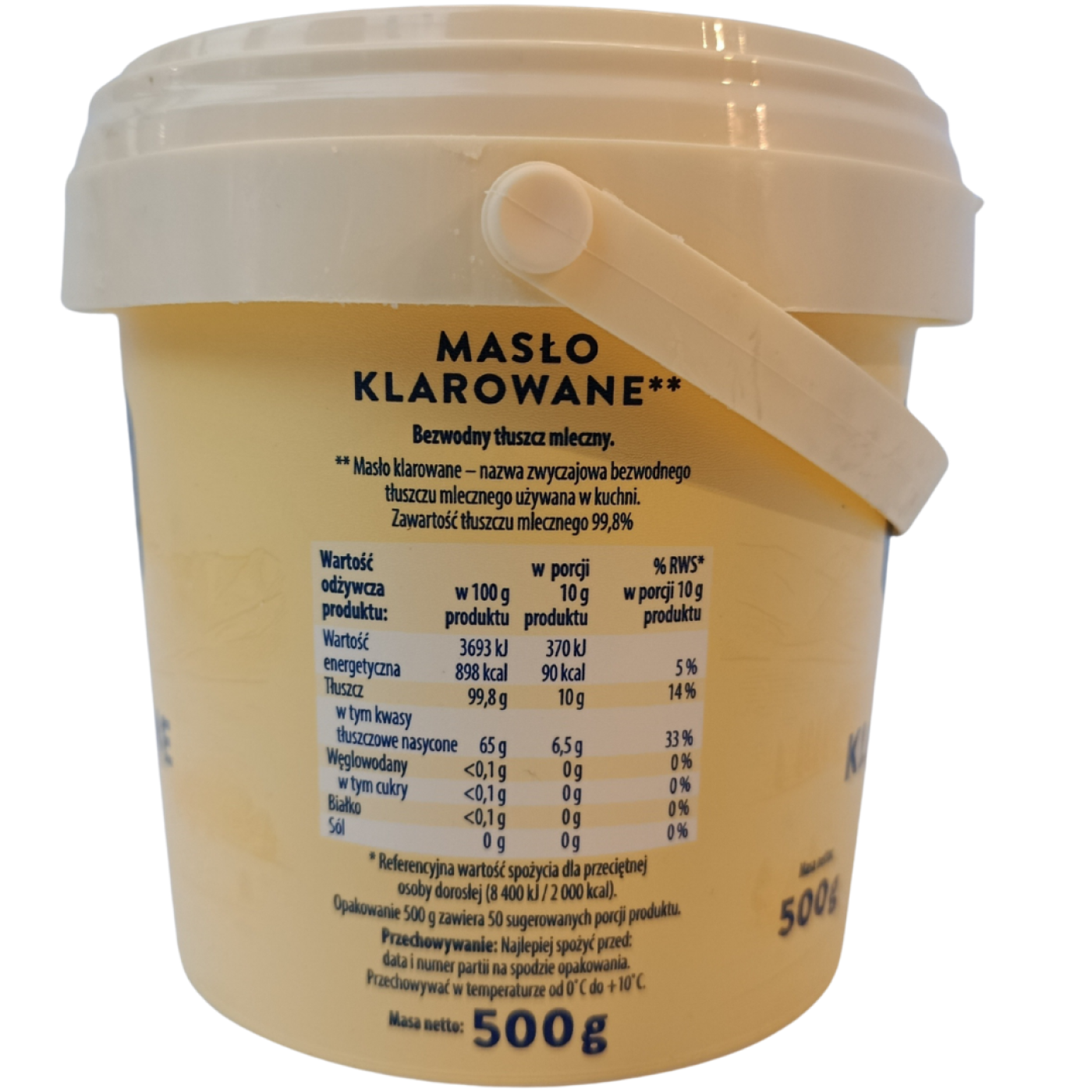 Масло топлене Maslo Klarowane 99,8% Mleczna Dolina, 500 г - це високоякісний натуральний продукт, виготовлений з добірного коров’ячого масла шляхом повільного топлення та очищення. У процесі виробництва з нього видаляються вода, лактоза та білки, завдяки чому масло має чистий склад і насичений смак. Масло ідеально підходить для смаження, тушкування та запікання, не пригорає і не утворює шкідливих домішок навіть при високих температурах. Воно надає стравам ніжний вершковий аромат і підкреслює природний смак інгредієнтів. Завдяки вмісту 99,8% жиру продукт легко засвоюється та підходить людям з непереносимістю лактози. Масло топлене широко використовується в європейській та східній кухнях, а також у здоровому харчуванні.