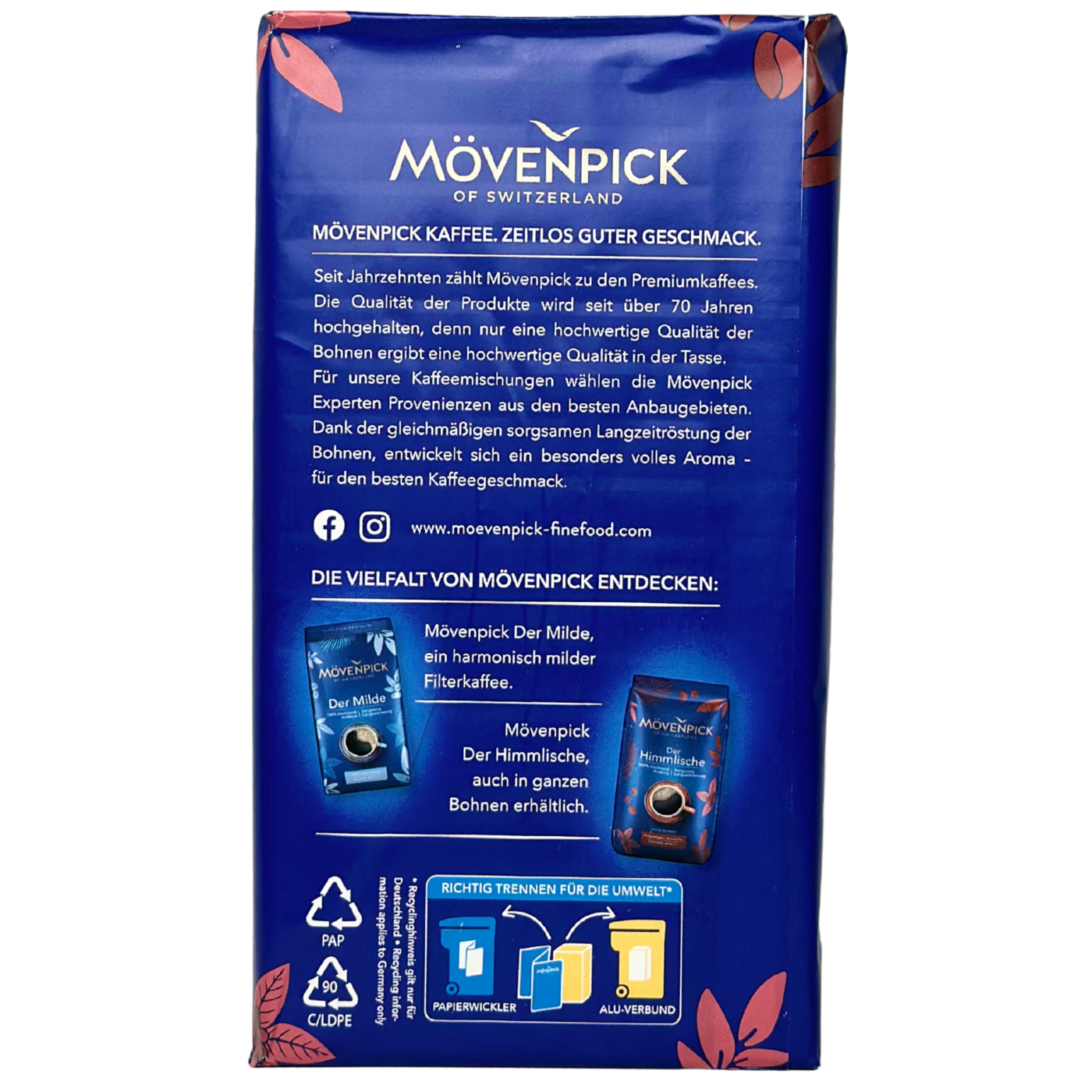 Відкрийте для себе «небесну» насолоду з меленою кавою Movenpick Der Himmlische. Цей швейцарський бленд, виготовлений у Німеччині, складається зі 100% добірної арабіки, що забезпечує ідеальний баланс смаку та аромату. Кава проходить ретельне середнє обсмаження, щоб надати їй неповторний, вишуканий смак та ніжні нотки