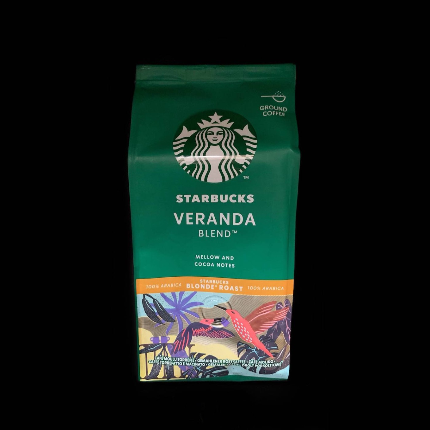 Veranda Blend – мелена кава від Starbucks, яка має м’який та ніжний смак з ледь відчутною кислинкою. Насолоджуючись нею, ви відчуєте делікатний відтінок какао і смажених горіхів, які залишать особливий післясмак. Для приготування Veranda Blend використовують відбірні зерна, що походять з Латинської Америки, які в подальшому піддаються повільному та делікатному обсмаженню.