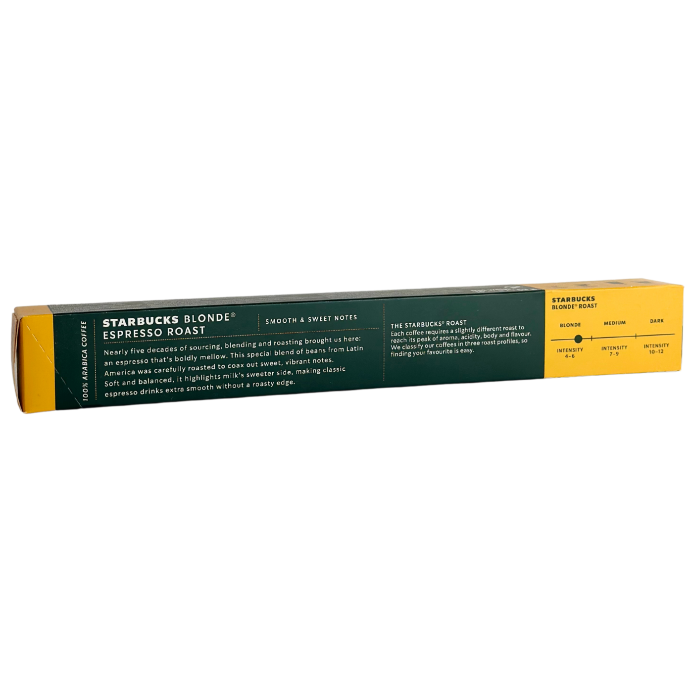 Кава в капсулах Blonde Espresso Roast Starbucks — це м’яка та легка інтерпретація класичного еспресо. Створена з ретельно відібраних арабік із Латинської Америки, ця кава має ніжний смак із нотками солодкого зерна та легкого цитрусового аромату. Blonde Espresso ідеально підходить для тих, хто шукає делікатніший, менш гіркий еспресо, зокрема в поєднанні з молоком у лате або капучино. Капсули сумісні з кавомашинами системи Nespresso.
