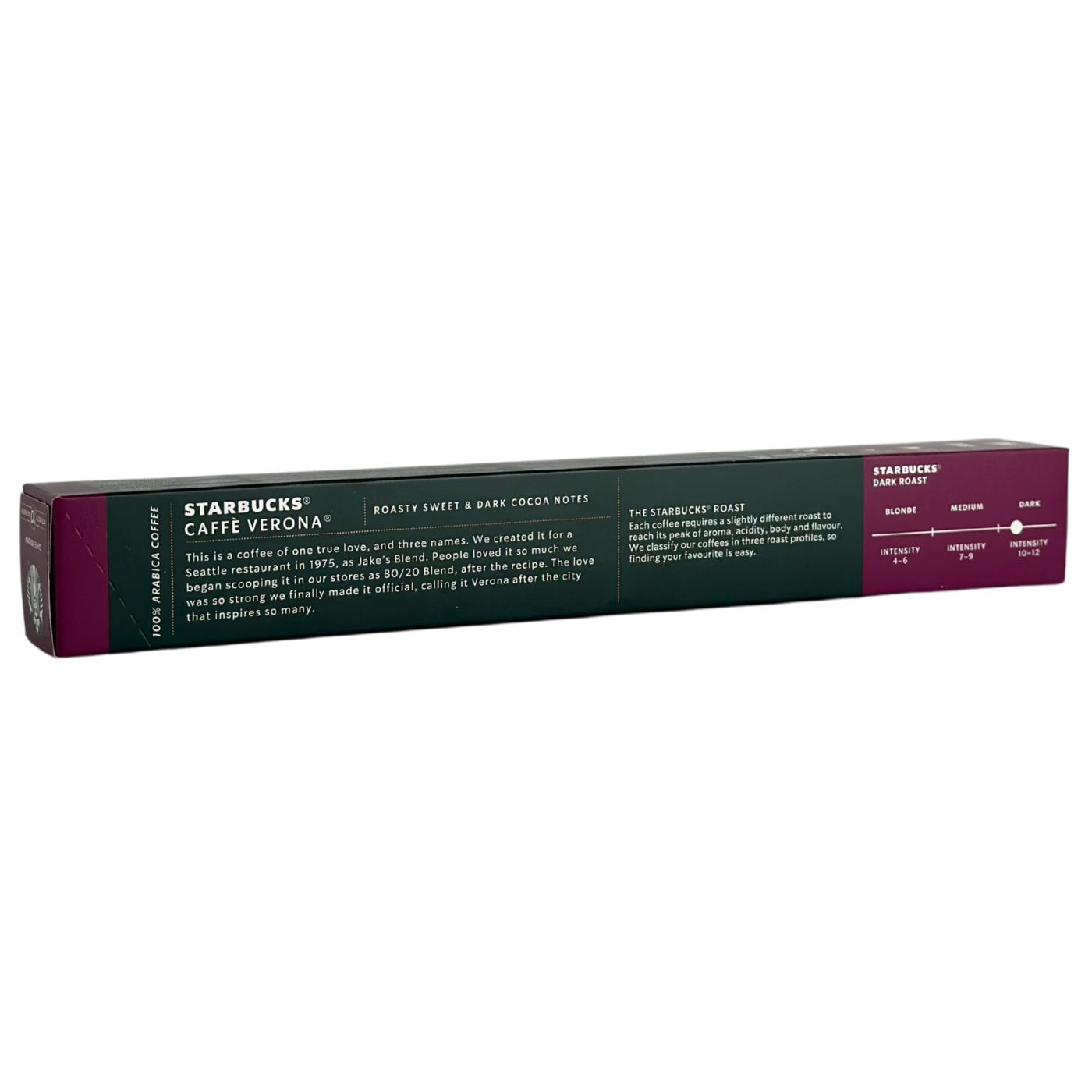 Кава в капсулах Caffè Verona Starbucks — це багатий, насичений бленд із глибоким смаком і тонкими нотами темного какао. Створена для справжніх поціновувачів кави, ця суміш поєднує в собі солодкувату гірчинку обсмажених зерен і ніжну карамельну м’якість. Капсули сумісні з кавомашинами Nespresso*, що дозволяє легко насолодитися професійним еспресо вдома або в офісі. Ідеальний вибір для тих, хто цінує інтенсивний аромат і гармонійний смак.