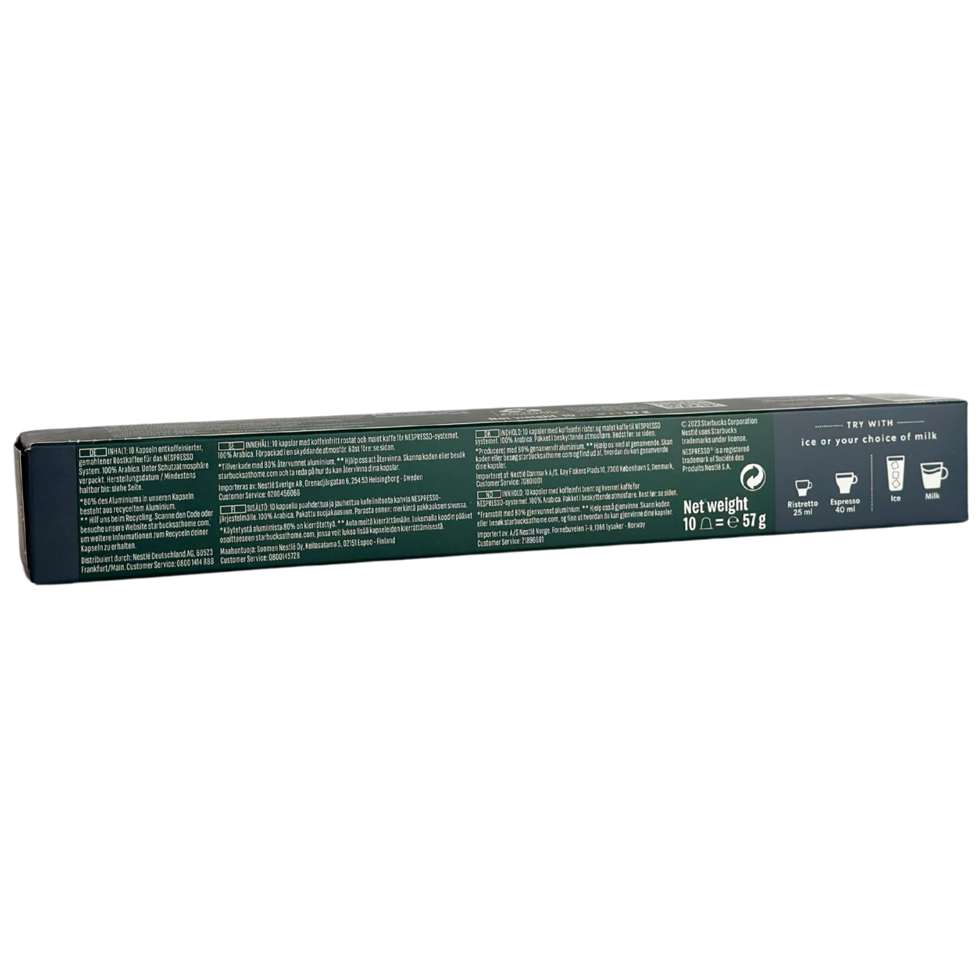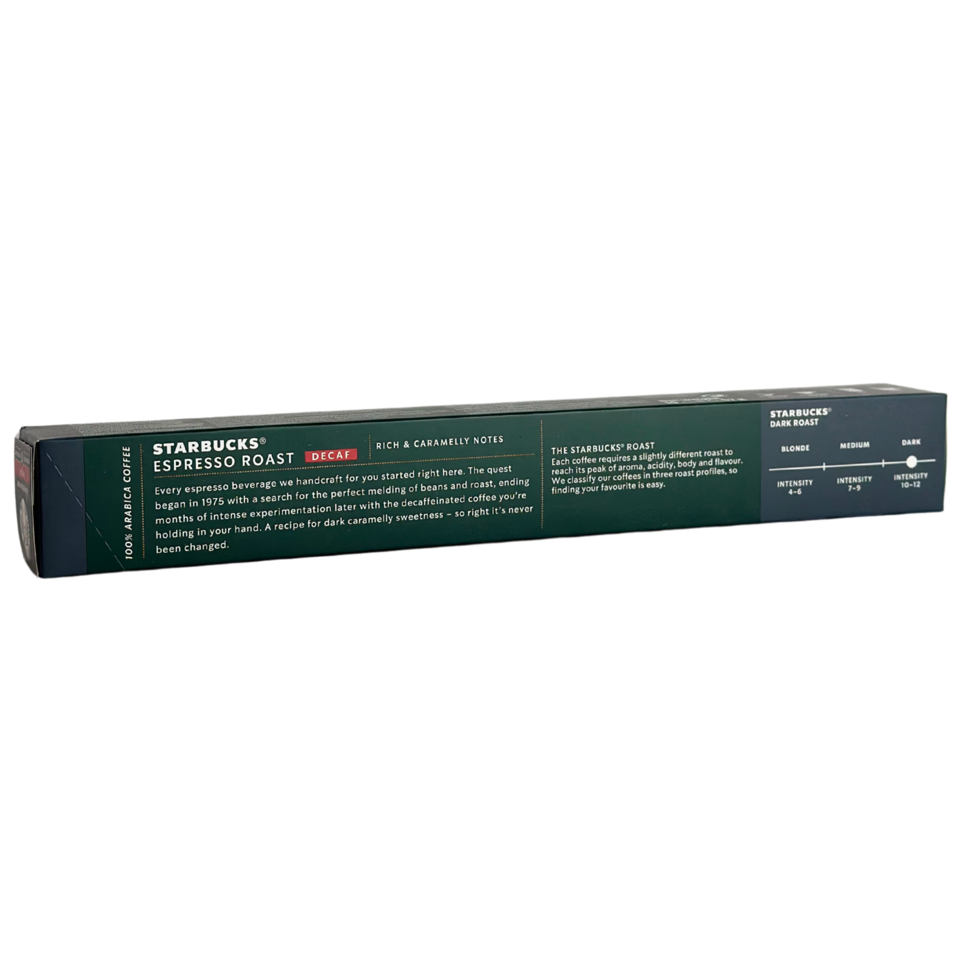 Насолоджуйтесь улюбленим смаком Starbucks без кофеїну! Starbucks Espresso Roast Decaf — це насичена, темнообсмажена кава з нотами карамелі та шоколаду, яку створено спеціально для тих, хто цінує глибину смаку, але хоче уникнути впливу кофеїну. Капсули підходять для систем Nespresso, що дозволяє приготувати ароматний еспресо в домашніх умовах за лічені секунди. Кожна капсула містить ретельно добірну 100% арабіку та зберігає справжній характер фірмового еспресо Starbucks.