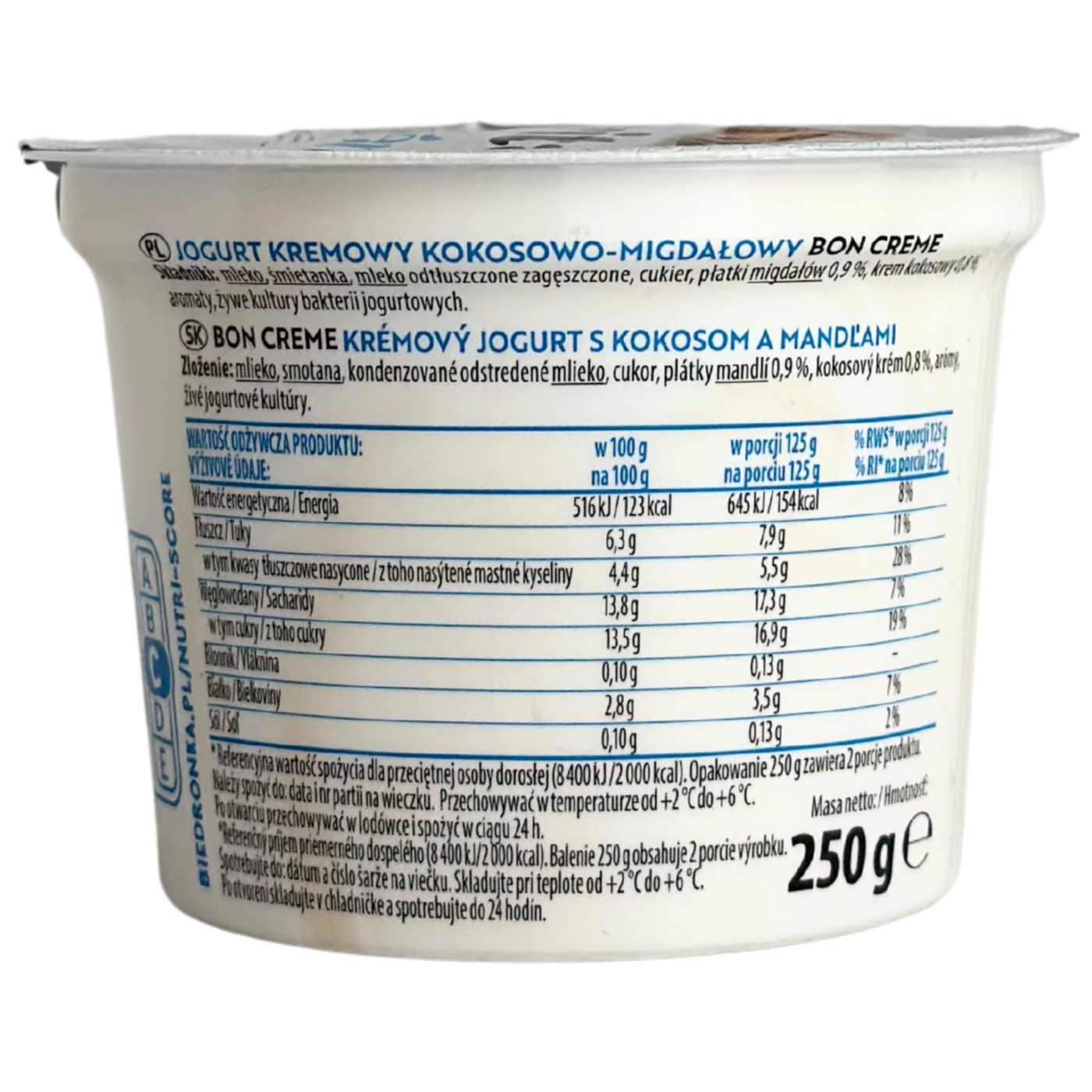 Йогурт зі смаком кокосу та мигдаля Bon Creme o smaku kokos&migdal Fruvita 250g