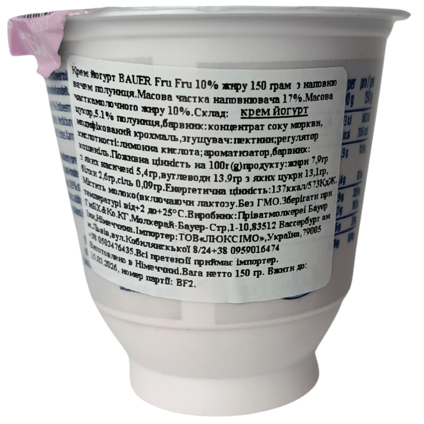 Крем йогурт зі смаком полуниці Der Sahnige Bauer 150g