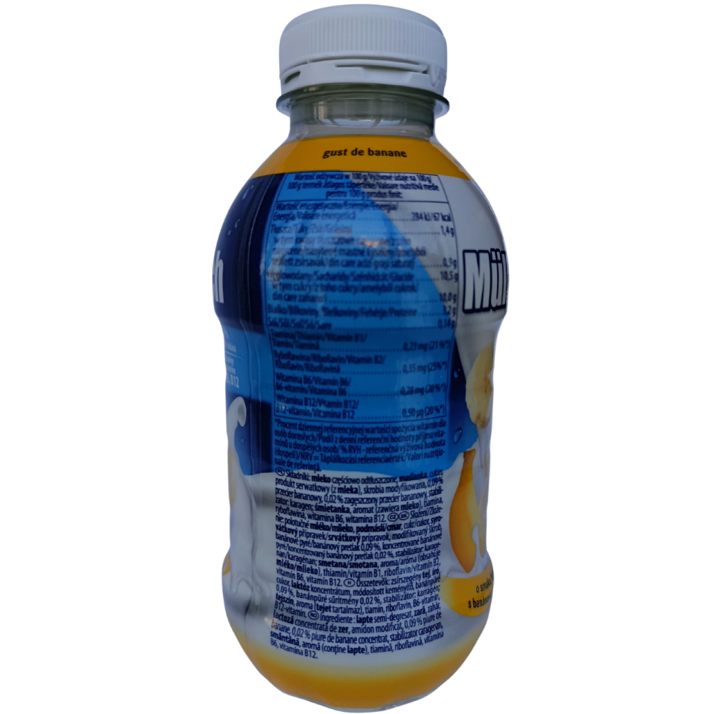 Молочний напій Мюллер зі смаком банану- що може бути смачніше? Коли на перекус хочеться чогось легкого і смачного, тоді на допомогу приходять питні йогурти! Збагачений кальцієм та вітаміном D3. Напій вражає солодким і вираженим смаком банану, приємною кислинкою та свіжістю. Можна вживати самостійно або використовувати в коктейлях, смузі або десертах.