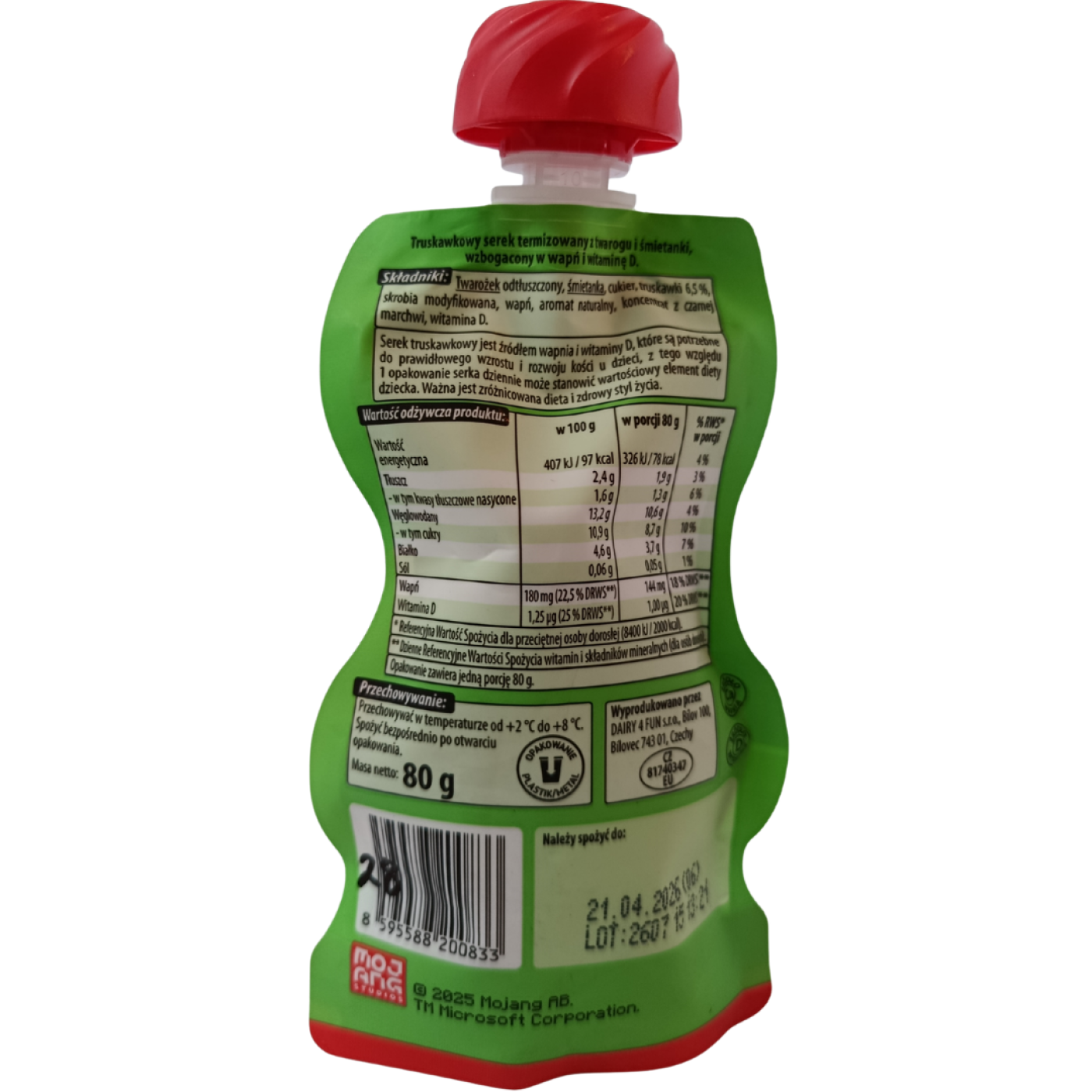 Дитячий питний сирок зі смаком полуниці - це смачний і корисний десерт для дітей. Він часто містить молочні білки, кальцій та вітаміни, що робить його чудовим варіантом для перекусу. Такий продукт може бути зручним для вживання на ходу або в школі, а також має привабливий дизайн, який подобається дітям. Дизайн з героями "Щенячого патруля" робить їх ще привабливішими для дітей. Також завдяки зручному упакуванню саше малечі буде зручно тримати сирок в ручках.