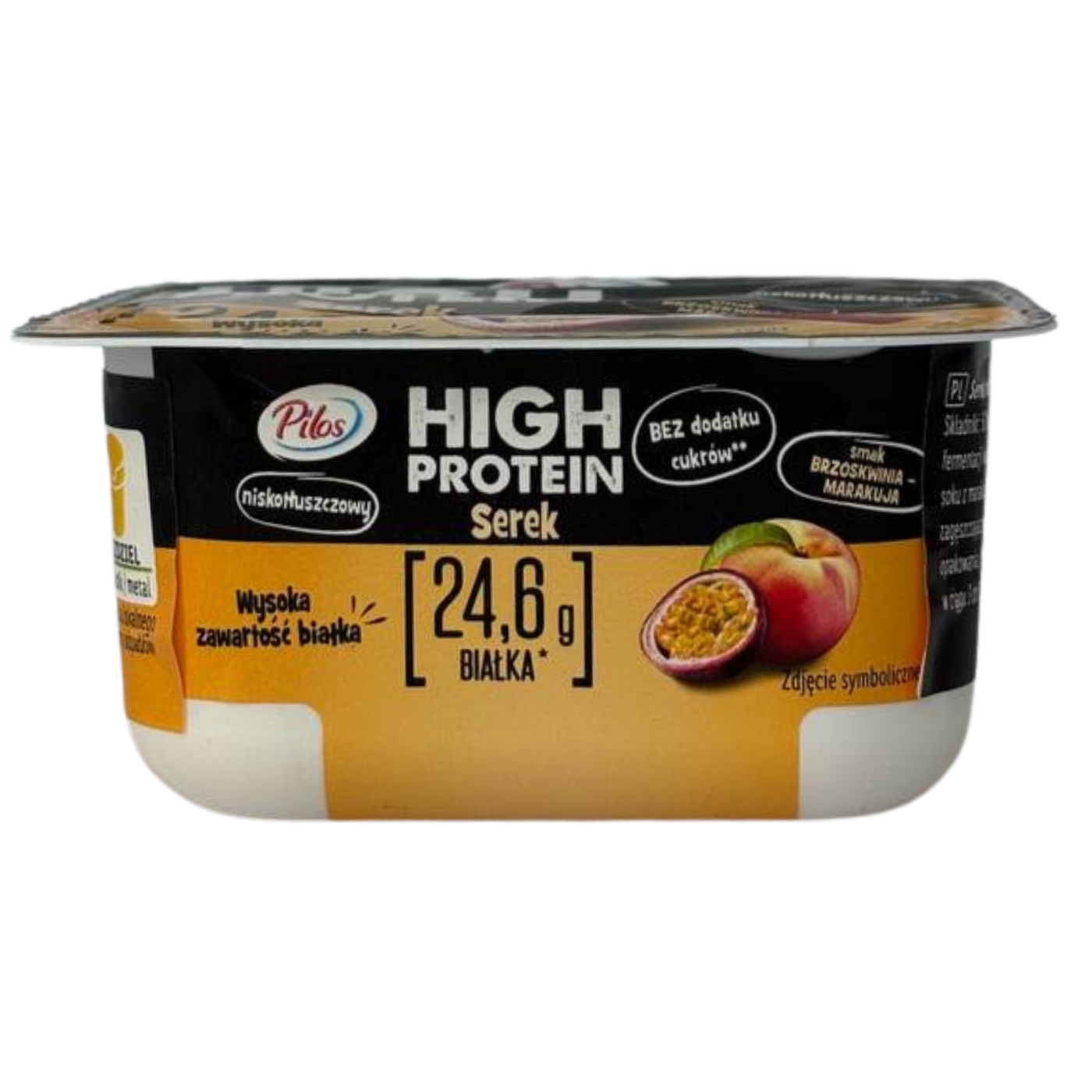 Протеїновий сирок зі смаком персику і маракуї без цукру Pilos High Protein 200g — це ніжний та ароматний перекус із поєднанням солодкої соковитості персика та екзотичної свіжості маракуї. Кремова текстура у поєднанні з фруктовими нотами створює легкий і збалансований смак. Високий вміст білка допомагає підтримувати енергію та тривале відчуття ситості, а відсутність доданого цукру робить продукт чудовим вибором для тих, хто дбає про свій раціон. Зручна упаковка 200 г ідеально підходить для перекусу будь-де. Pilos дарує якість і насолоду в кожній ложці.