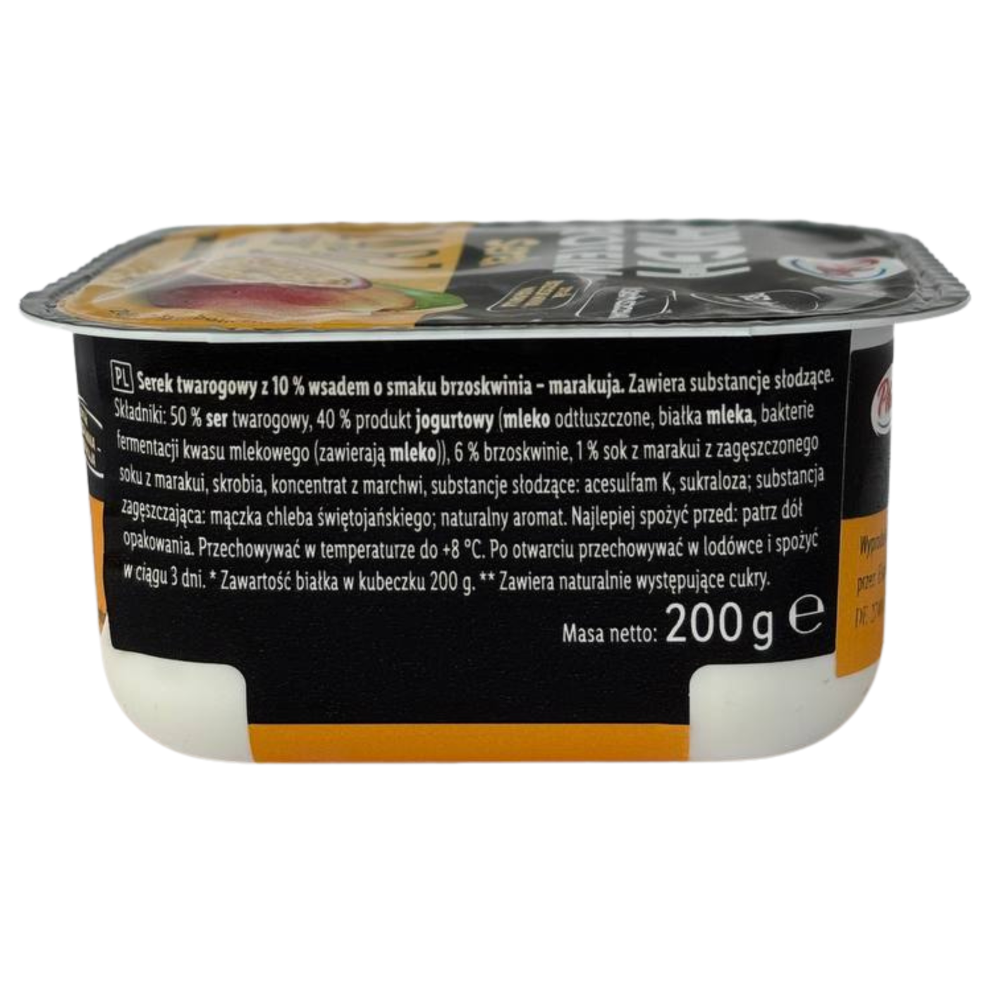 Протеїновий сирок зі смаком персику і маракуї без цукру Pilos High protein 200g