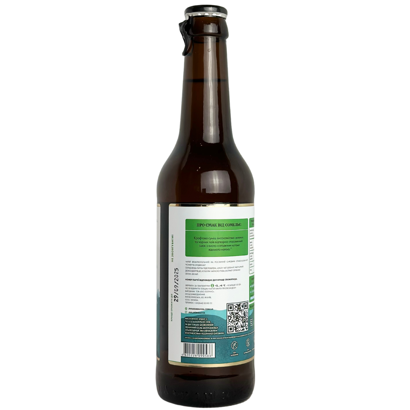 Комбуча Jiva Оріджінал - цекрафтова суміж високоякісних зелених та чорних чаїв які відтворюють старовинний смак з кисло-солодкими нотками відомого напою. В такий напій входить: підготовлена питна вода, цукор, чай зелений, чай чорний, діоксид вуглецю, культура чайного гриба. Дуже смакує особливо влітку охолодженим.Смакуйте та насолоджуйтеся.