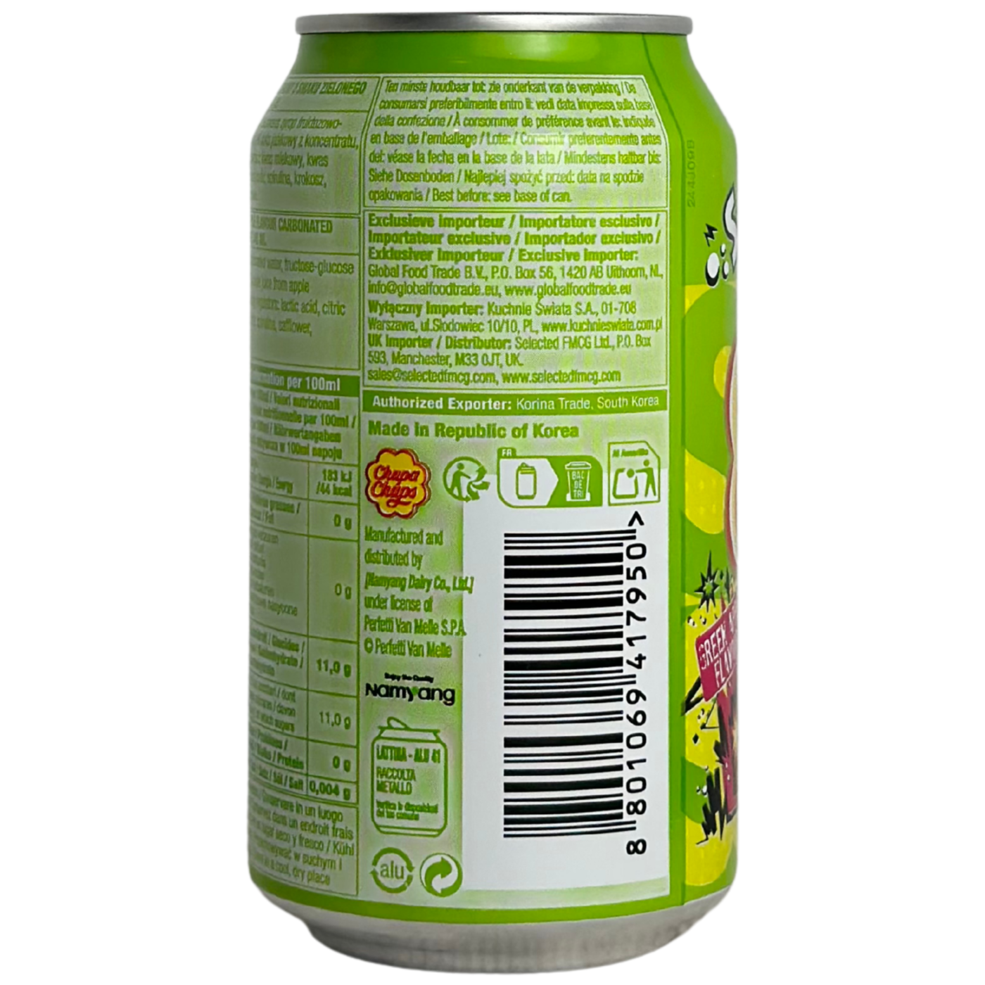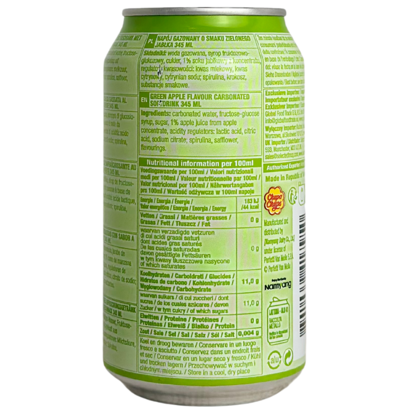 Chupa Chups Sparkling Sour Green Apple – це газований напій зі смаком кислого зеленого яблука, який поєднує в собі солодкість та кислинку, нагадуючи смак однойменних льодяників. Він освіжає, бадьорить ідеально підходить для спекотних днів та може використовуватися як основа для коктейлів.