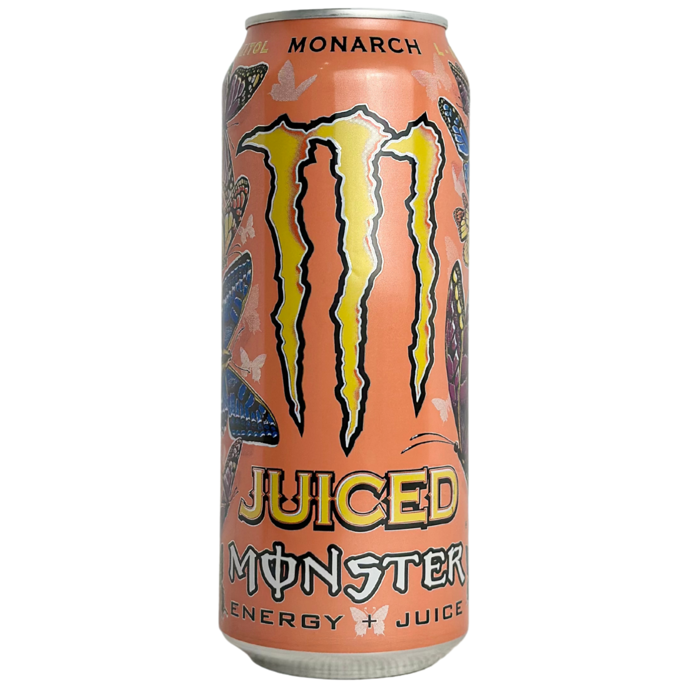 Перейти до покупокЕнергетичний напій Monster Energy+Juice Monarch зі смаком персика та нектарину. Газований енергетичний напій з 5 % концентратом фруктового соку, таурином, кофеїном, L- карнітином, інозитолом та вітамінами групи В.