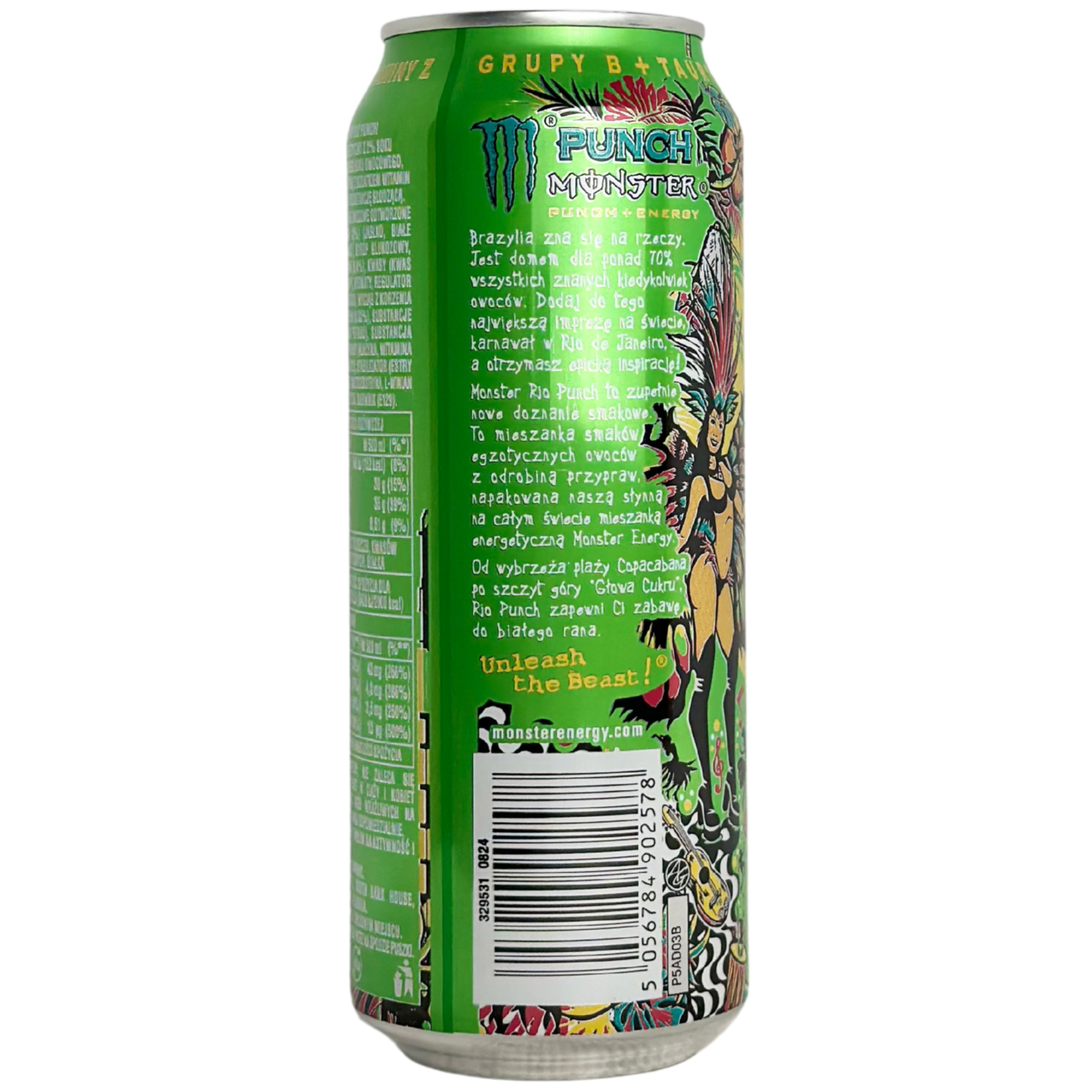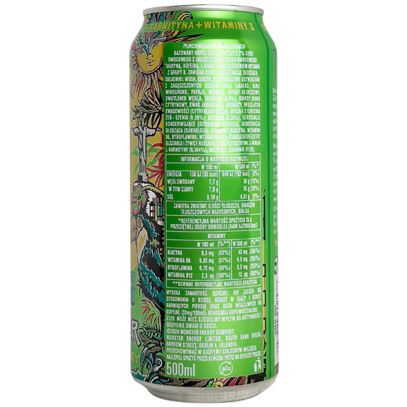Енергетичний напій Monster Energy punch має насичений та м'який смак класичного фруктового пуншу. Ідеальне поєднання правильних інгредієнтів у правильній пропорції, яку вміє робити тільки Monster. Виготовляється на основі води, фруктових соків, цукру, сиропу глюкози, вуглекислого газу та інших компонентів. До складу напою входять кофеїн, деякі вітаміни групи В та карнітин. Безалкогольний газований напій із низьким вмістом цукру.