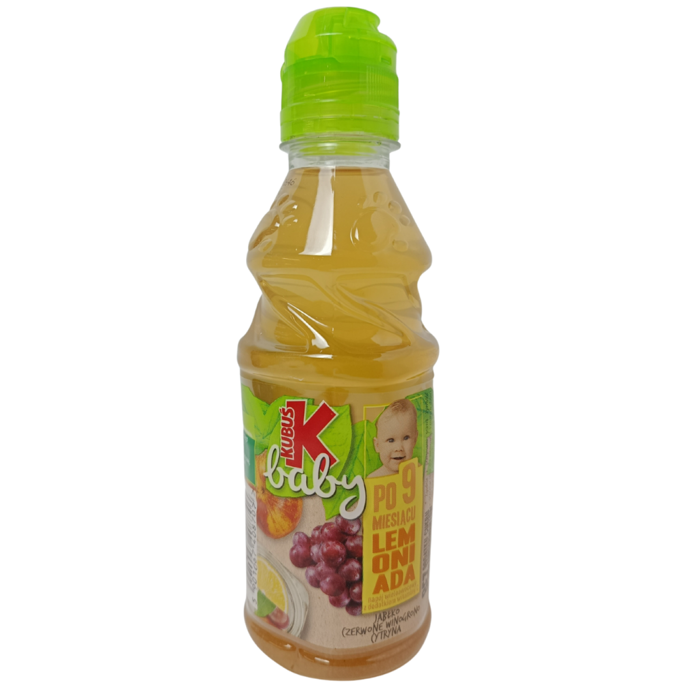 Дитячий лимонад Kubuś Baby з яблука, червоного винограду та лимона — це фруктовий напій, розроблений спеціально для маленьких дітей. Він поєднує натуральний фруктовий сік та воду і зазвичай не містить доданого цукру, консервантів або барвників