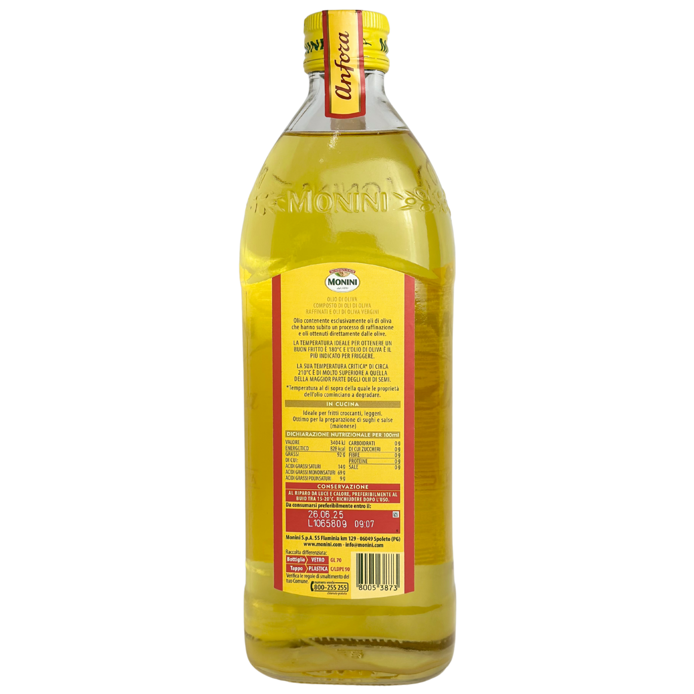 Відомий італійський виробник Monini пропонує оливкову олію Olio di Oliva Anfora, яка має ніжний золотистий колір, делікатний смак та приємний аромат з мигдалевою ноткою. Це суміш рафінованої олії та Екстра Вірджин першого віджиму, вона стане більш корисною альтернативою іншим оліям, адже містить цінні речовини та точно не зашкодить здоров’ю, якщо смажити на ній.