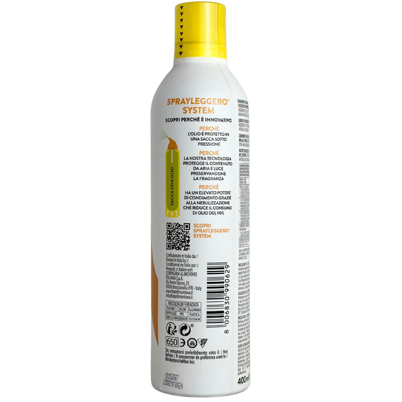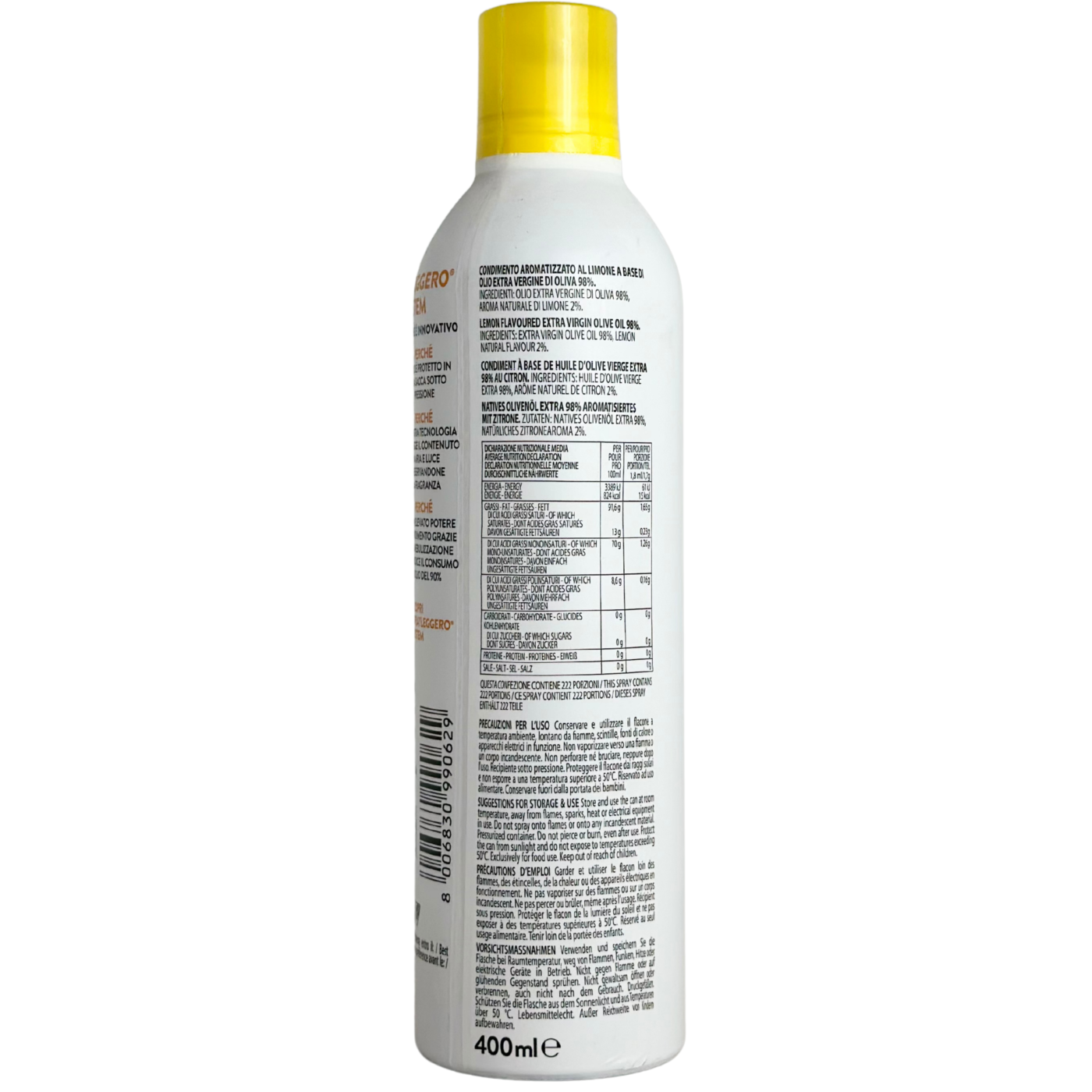 Оливкова олія італійського виробництва з додаванням натурального лимонного соку зі зручним розпилювачем, володіє ніжним смаком з легкими нотками кислинки. Використовується для салатів, маринування м'яса та риби, та для приготування різних соусів та паст.