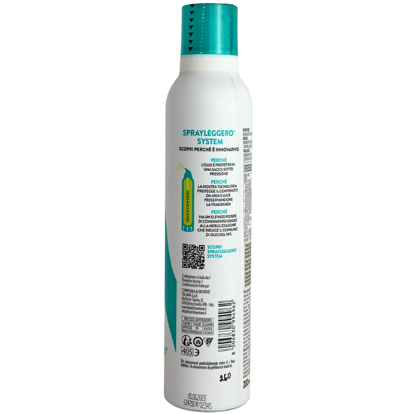 Олія в спрею рисова Olio di Riso Mantova 200ml