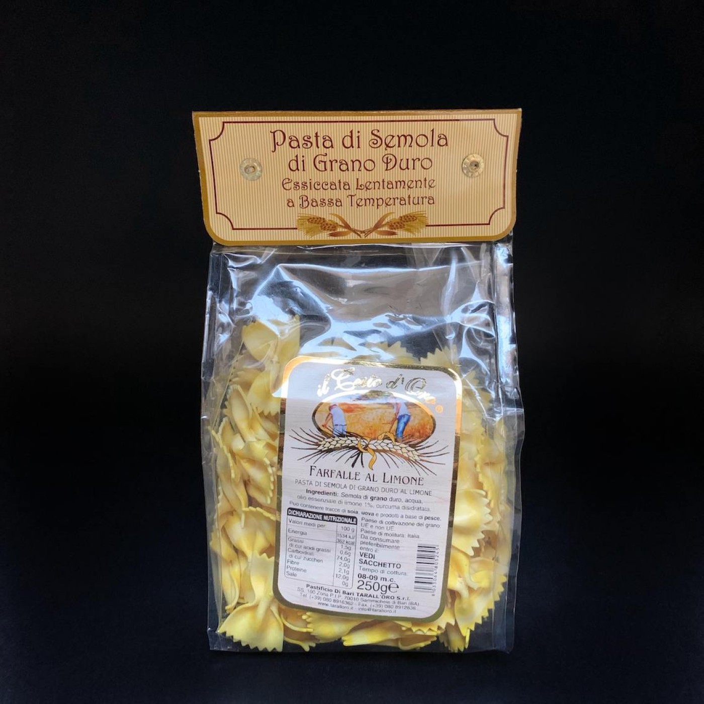 Farfalle al Limone – фарфале з освіжаючим смаком лимону, який важко не оцінити. Їх виготовляють з борошна твердих сортів пшениці, а особливого смаку додає лимонна олія в складі. Це справді оригінальна паста, яка дозволяє імпровізувати та дивувати близьких і друзів.