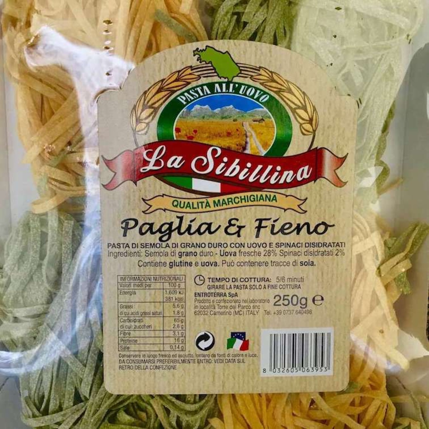 La Sibillina Paglia & Fieno – це паста в формі «гнізда», яка виготовляється з додаванням свіжих яєць та шпинату, тому містить ще більше корисних речовин. Вона має вигляд довгих і тонких смужок та швидко готується – всього 5-6 хвилин.