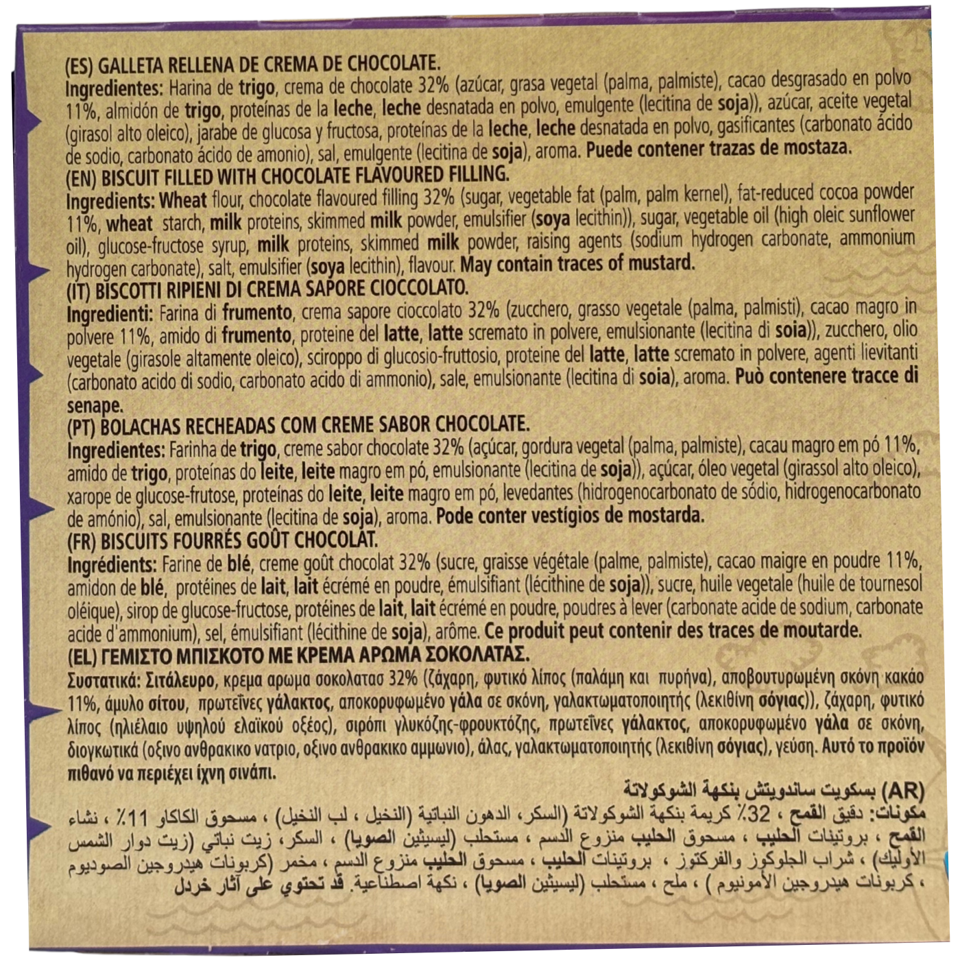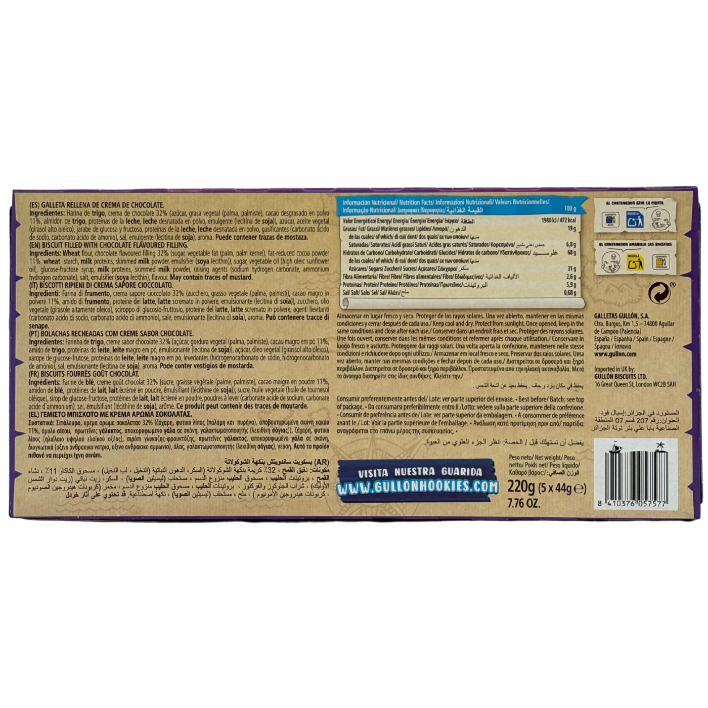 Чарівне печиво-сендвіч Dibus Magic Gullon з апетитним шоколадним кремом. Кожне печиво прикрашене веселими малюнками героїв, містить 7 вітамінів, кальцій та залізо. Виготовлене без пальмової олії, ідеально для дитячого сніданку чи перекусу