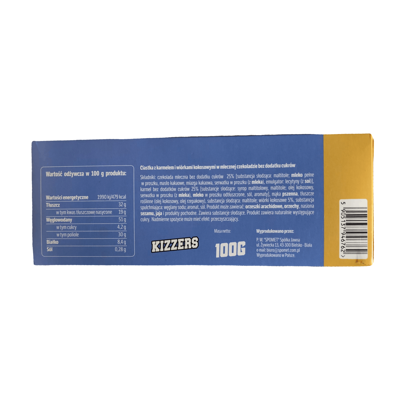 Печиво з карамеллю та кокосовою стружкою в молочному шоколаді без цукру Kizzers Ciastka 100g