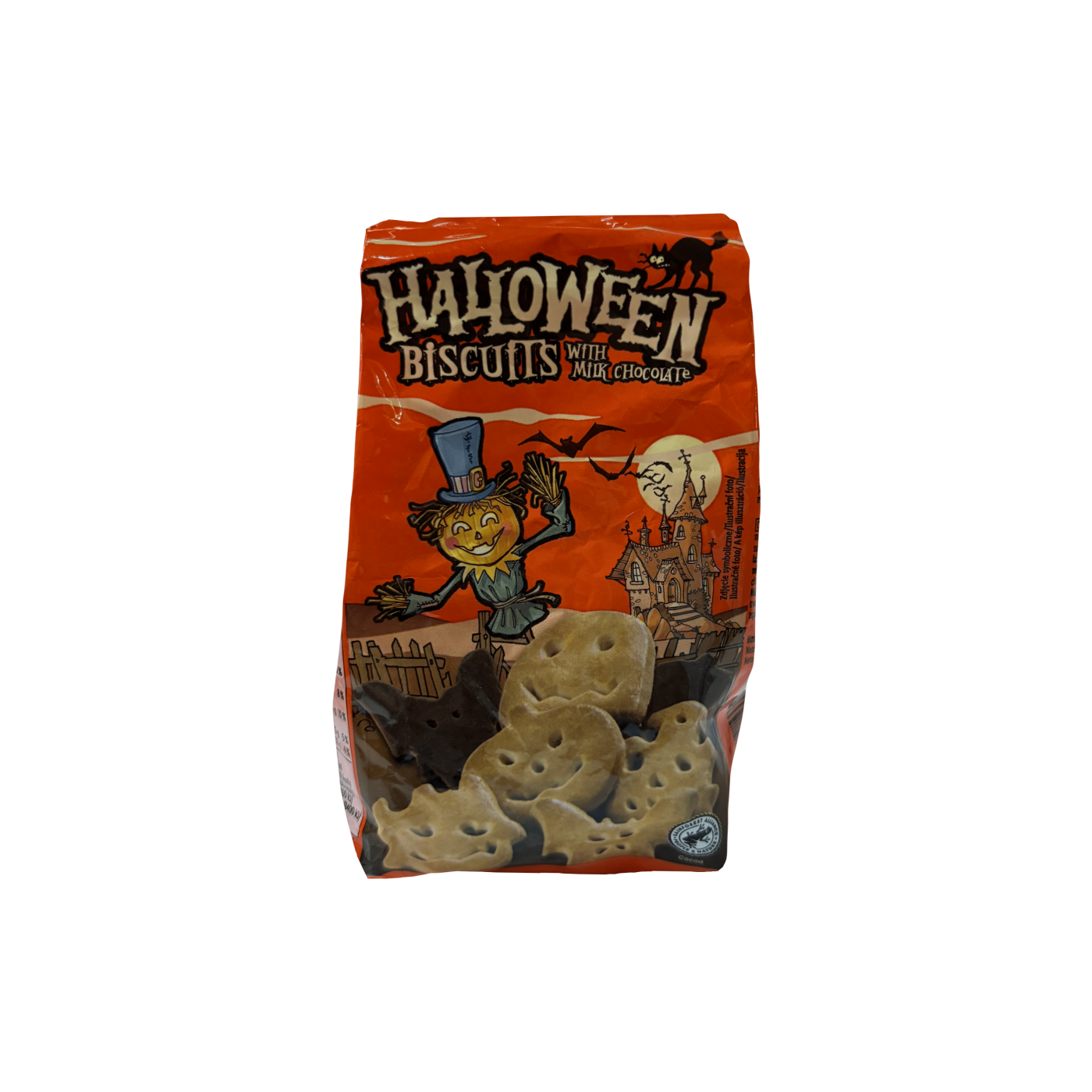 Halloween Biscuits with Milk Collate — це смачне та тематичне печиво, спеціально розроблене до свята Хелловін. Воно прикрашене оригінальними малюнками у вигляді привидів, гарбузів, відьом та інших святкових символів. Хрустке печиво з ніжною молочною глазур'ю всередині забезпечує унікальне поєднання текстур і смаків.