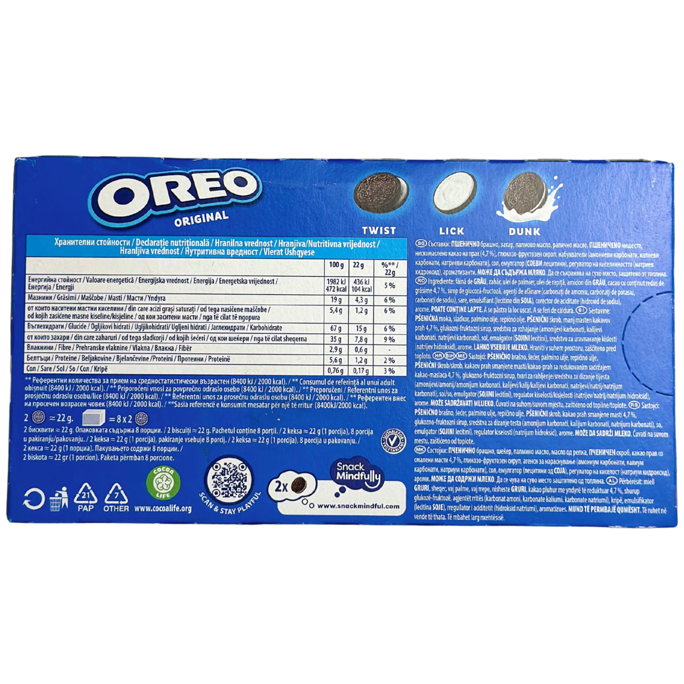 Печиво Oreo Original - це всесвітньо відома класика, яка складається з двох круглих хрустких шоколадних дисків і ніжної солодкої кремової ванільної начинки між ними. Це культове печиво стало улюбленим десертом мільйонів людей завдяки своєму унікальному смаковому контрасту та знаменитому ритуалу "скрути, лизни, вмочи" в молоко. Ідеально підходить для будь-якого віку, для перекусу в будь-який час дня, як інгредієнт для десертів або просто як смачне доповнення до чаю чи кави