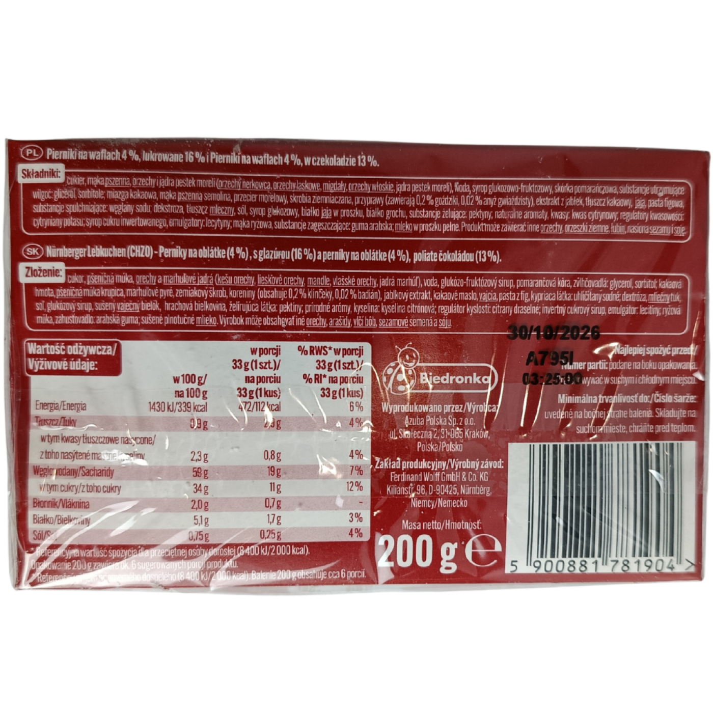 Пряники нюрнберзькі в глазурі та шоколаді Magnetic 200 g — це традиційні пряники з ніжною, ароматною серединкою, покриті зовні солодкою глазур’ю та шоколадною оболонкою. Така комбінація дає приємне поєднання — м’яке пряникове тісто з прянощами та солодка зовнішня оболонка, що робить смак глибоким, багатошаровим та затишним.